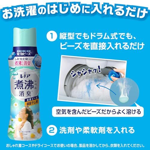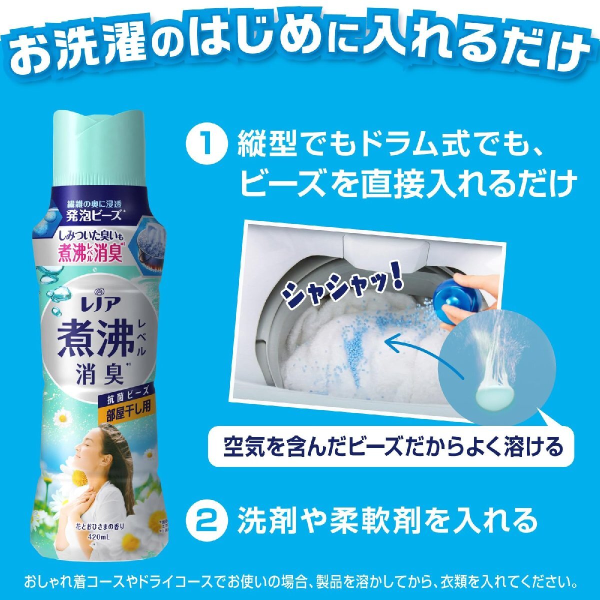 ・ 420ミリリットル ・PatternName:本体 420mL・抗菌ビーズは、衣類の消臭専用のお洗濯ビーズ。いつもの洗剤や柔軟剤に加えるだけで、しみついたニオイまで煮沸レベルに消臭* (*洗濯後・部屋干しにて検証。)・エリそでの黄ばみも120日ブロック* (*皮脂を再現した成分と綿の生地の模擬実験にて検証)・衣類の抗菌*だけでなく、洗濯槽の防カビ*2まで (*全ての菌の増殖を抑えるわけではありません。*2既に付着していたカビや汚れを取り除くわけではありません。)・柔軟剤に比べて超吸水力* (*当社柔軟剤比。複数回洗濯後。)・使い方は簡単。洗濯前に洗濯槽に直接入れるだけ。縦型・ドラム式、どちらの洗濯機にも使用できます。いろいろな柔軟剤とも香りの相性バツグンです。