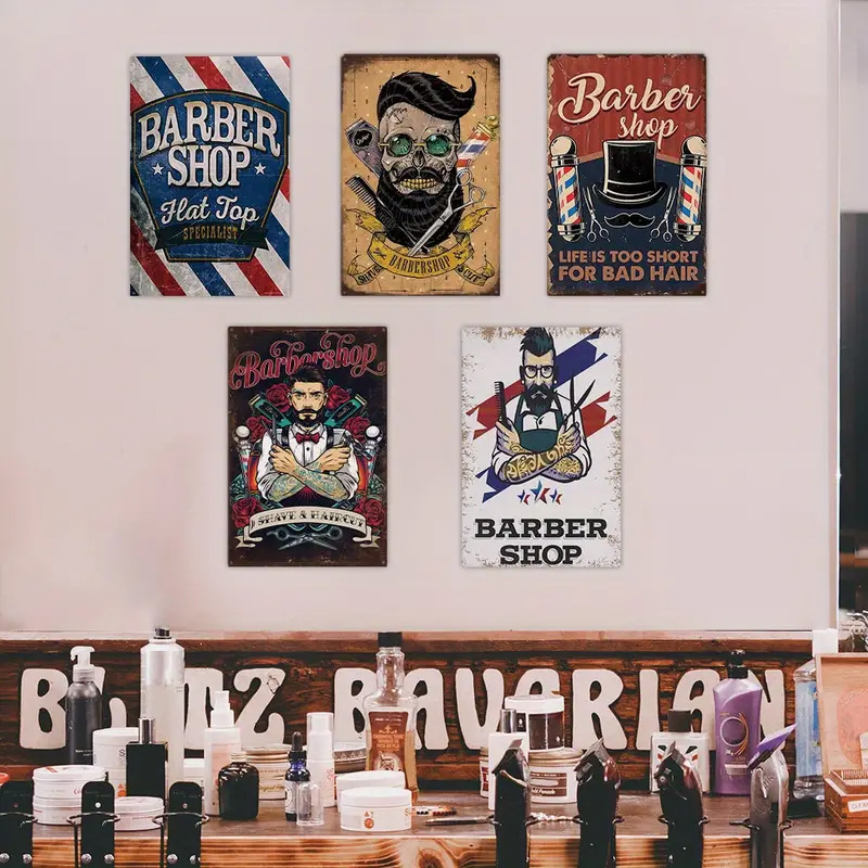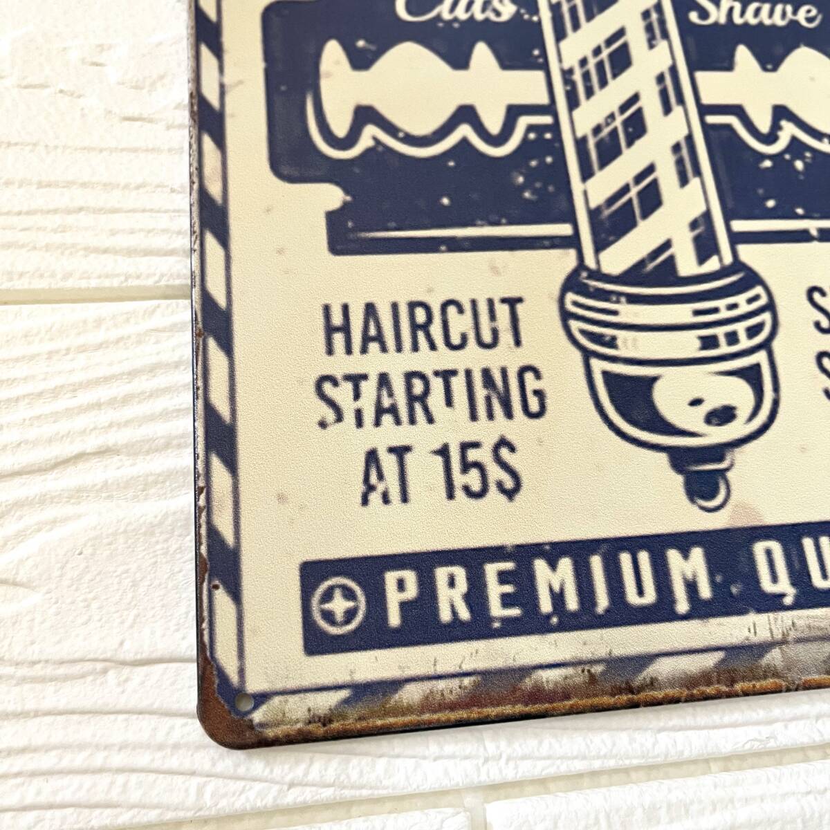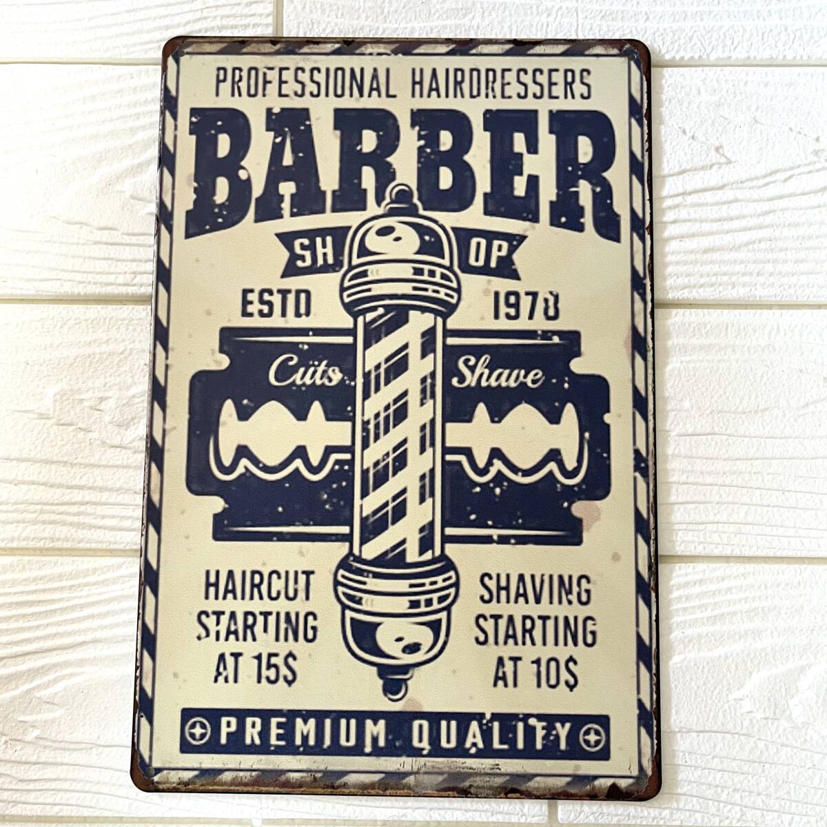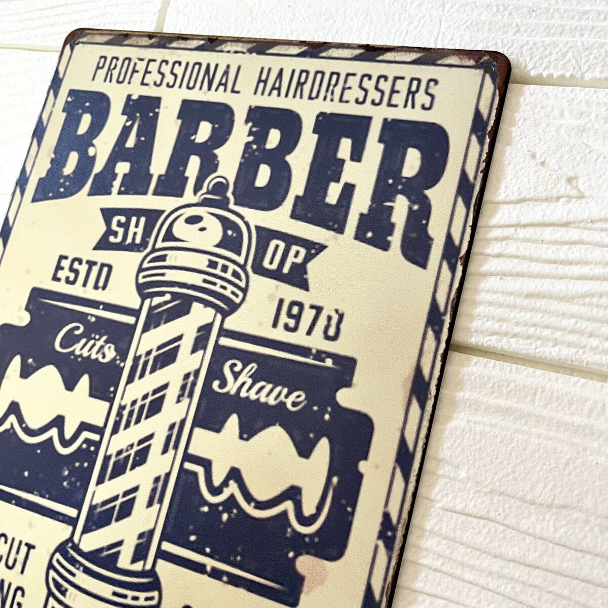 アメリカンバーバー風のブリキ看板です。レトロでヴィンテージなデザインは、おしゃれなインテリアとして抜群の存在感を発揮します。理容室やヘアサロンの装飾はもちろん、自宅のインテリアにもぴったりです。