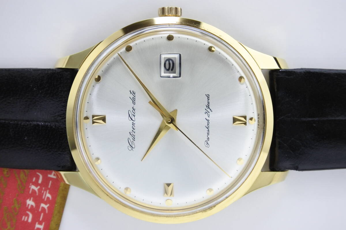 国産名機 ☆ 1963年9月製 シチズン エースデート 21石  手巻紳士腕時計  稀少日付付きモテル 奇跡デッドストック品