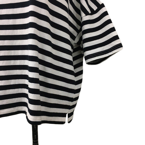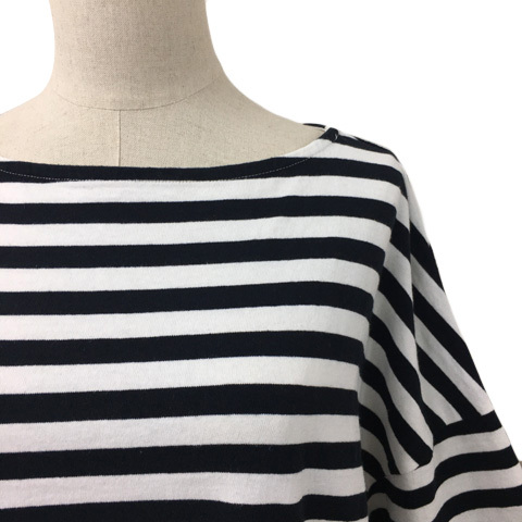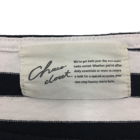 チャコクローゼット カットソー Tシャツ プルオーバー ボートネック ボーダー 五分袖 FREE 黒 白 ブラック ホワイト レディース