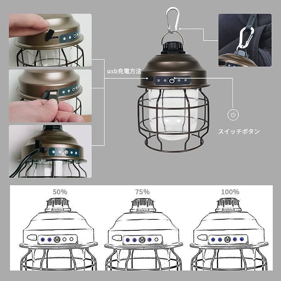 ledランタン 充電式 キャンプ ランタン レイルロードランタン 高輝度/実用点灯 3つ点灯モード/IPX4防水/暖色/携帯型/無段階調光 らんたん インテリア アウトドア BBQ 登山 夜釣り 応急 防災 停電用 災害グッズ