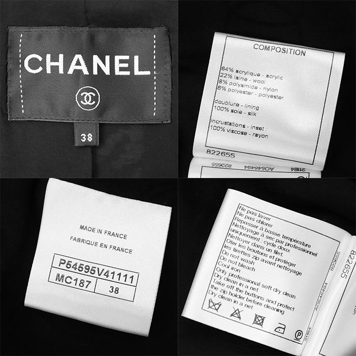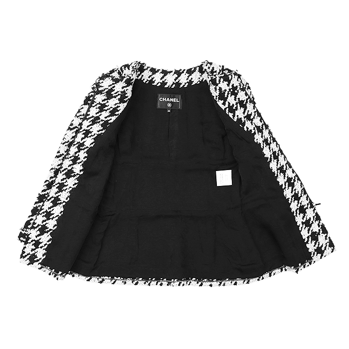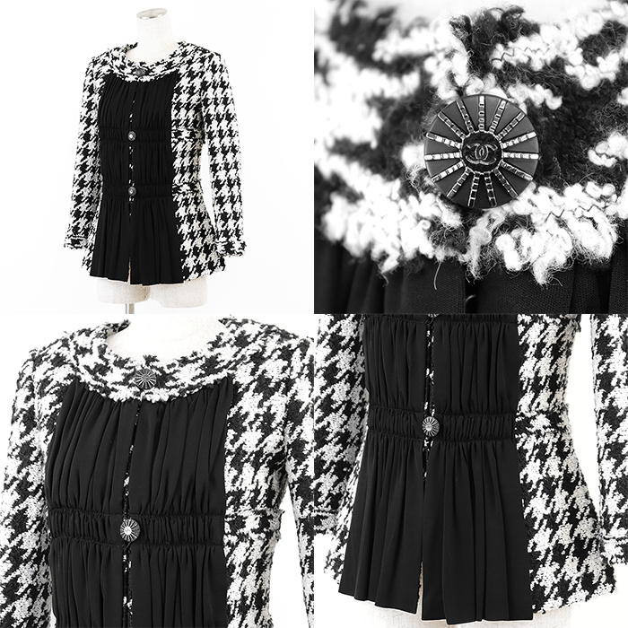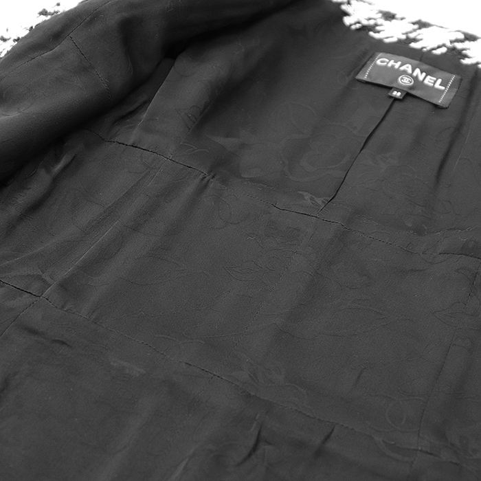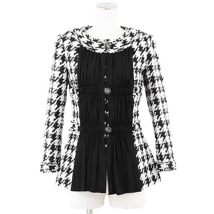 シリーズCHANEL シャネル ジャケット P54595 ツイード シフォン コンビネーション COCOマーク ボタン レディース 38 白 黒 仏製