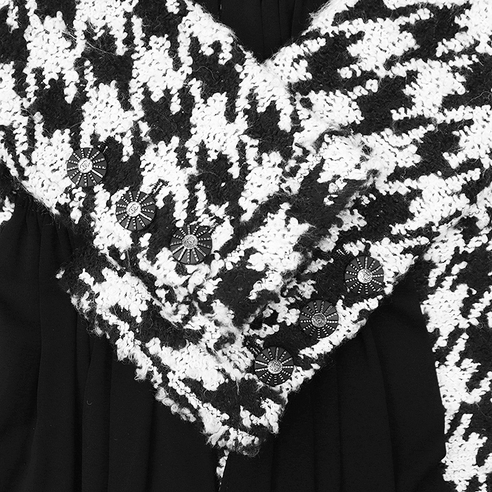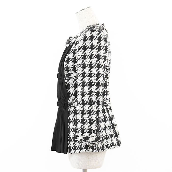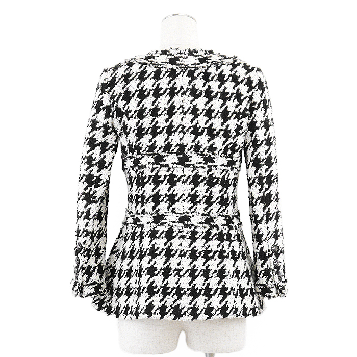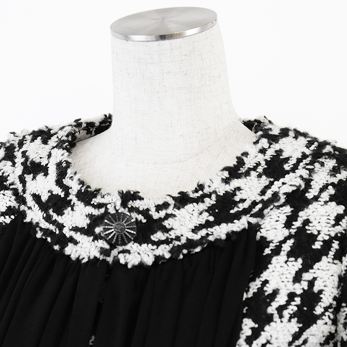■ ハウンドトゥース ツイード ノーカラー シフォン コンビネーション ジャケット【2100020000028956CFHRZZ】