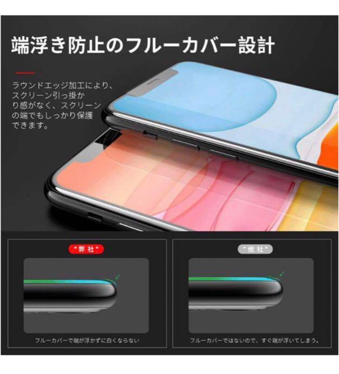 【ラウンドエッジ加工、端浮き防止】ラウンドエッジ加工により、の画面にフルカバーされるので、スクリーン引っ掛かり感がなく、スクリーンの端でもしっかりガードします。長時間使用でも端が白くなりません。