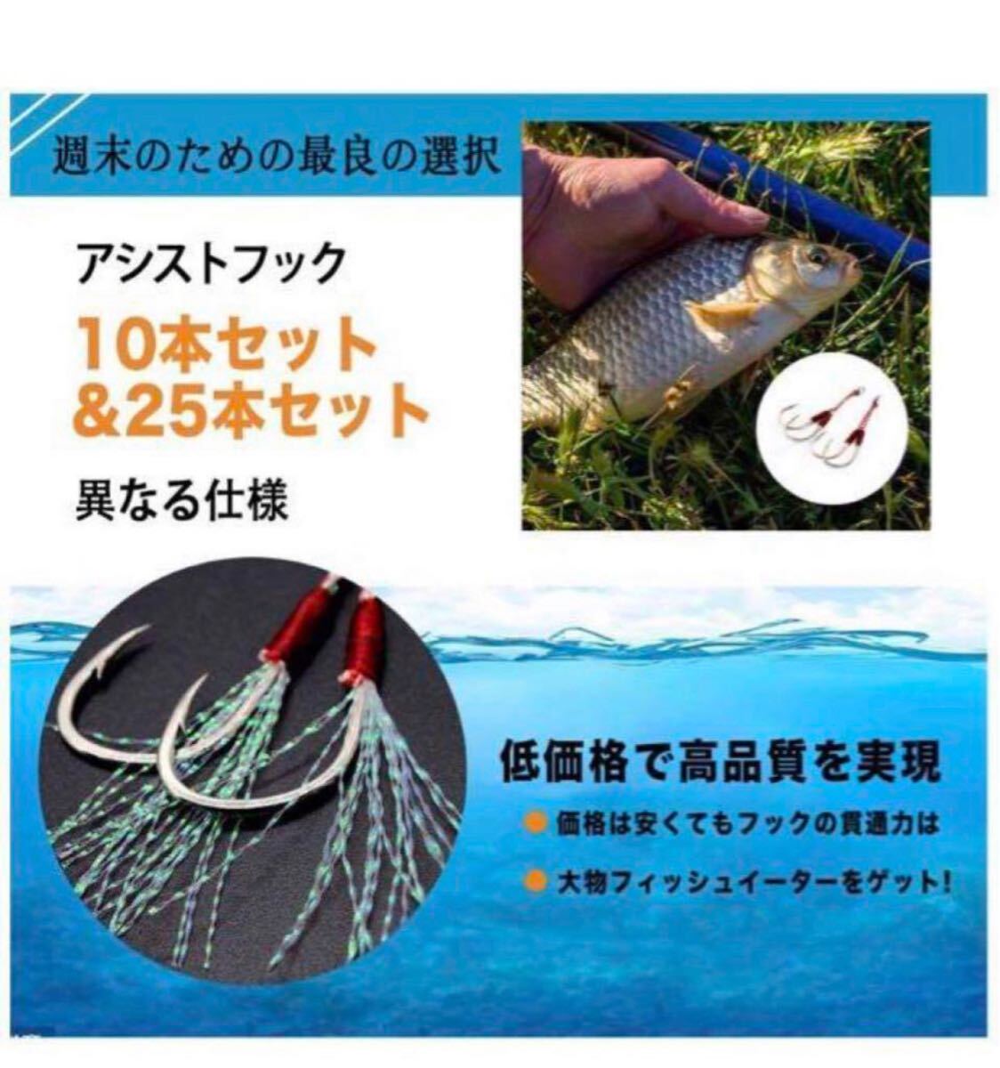 ダブルアシストフック メタルジグ 10本セットティンセル付き 釣具 ライトショアジギング オフショアジギング 釣り用品