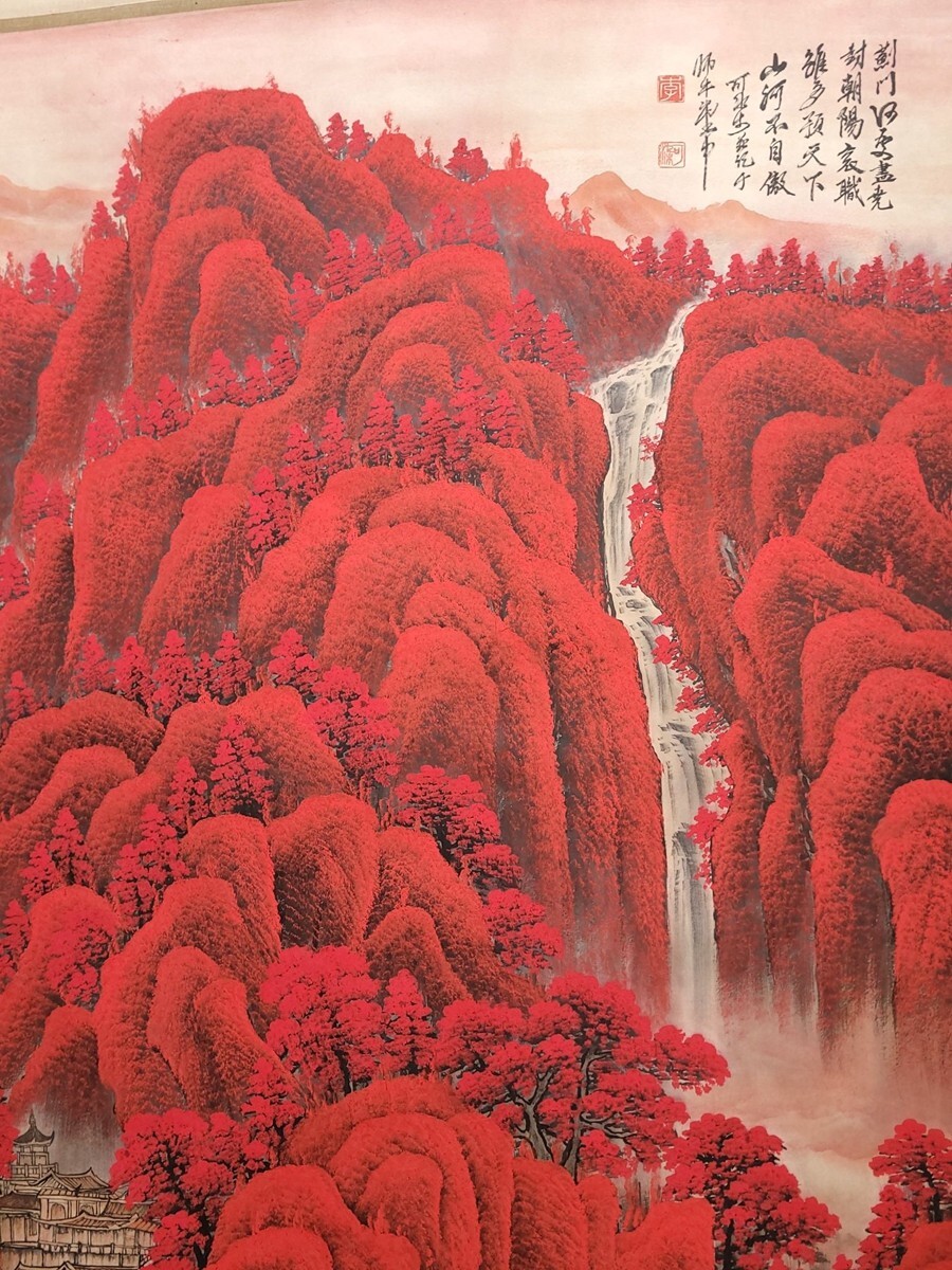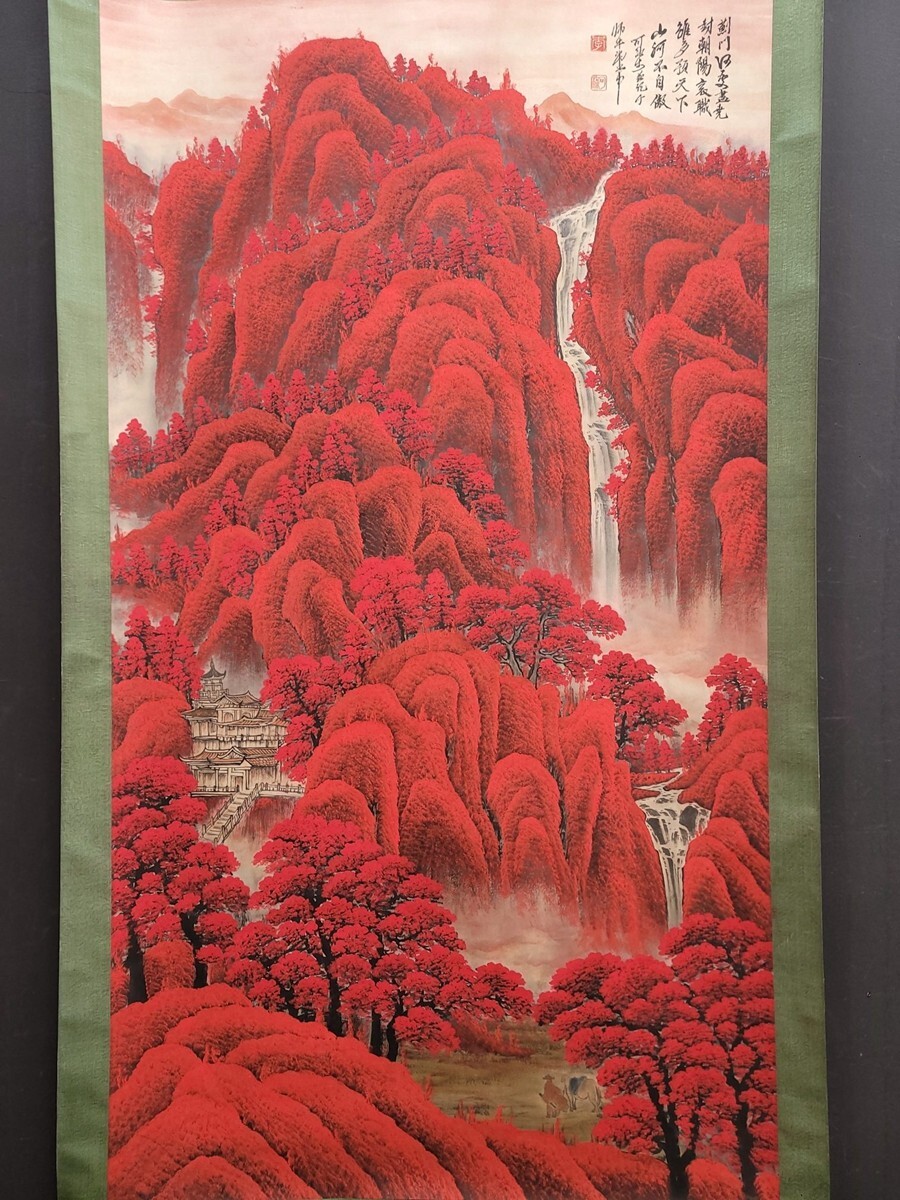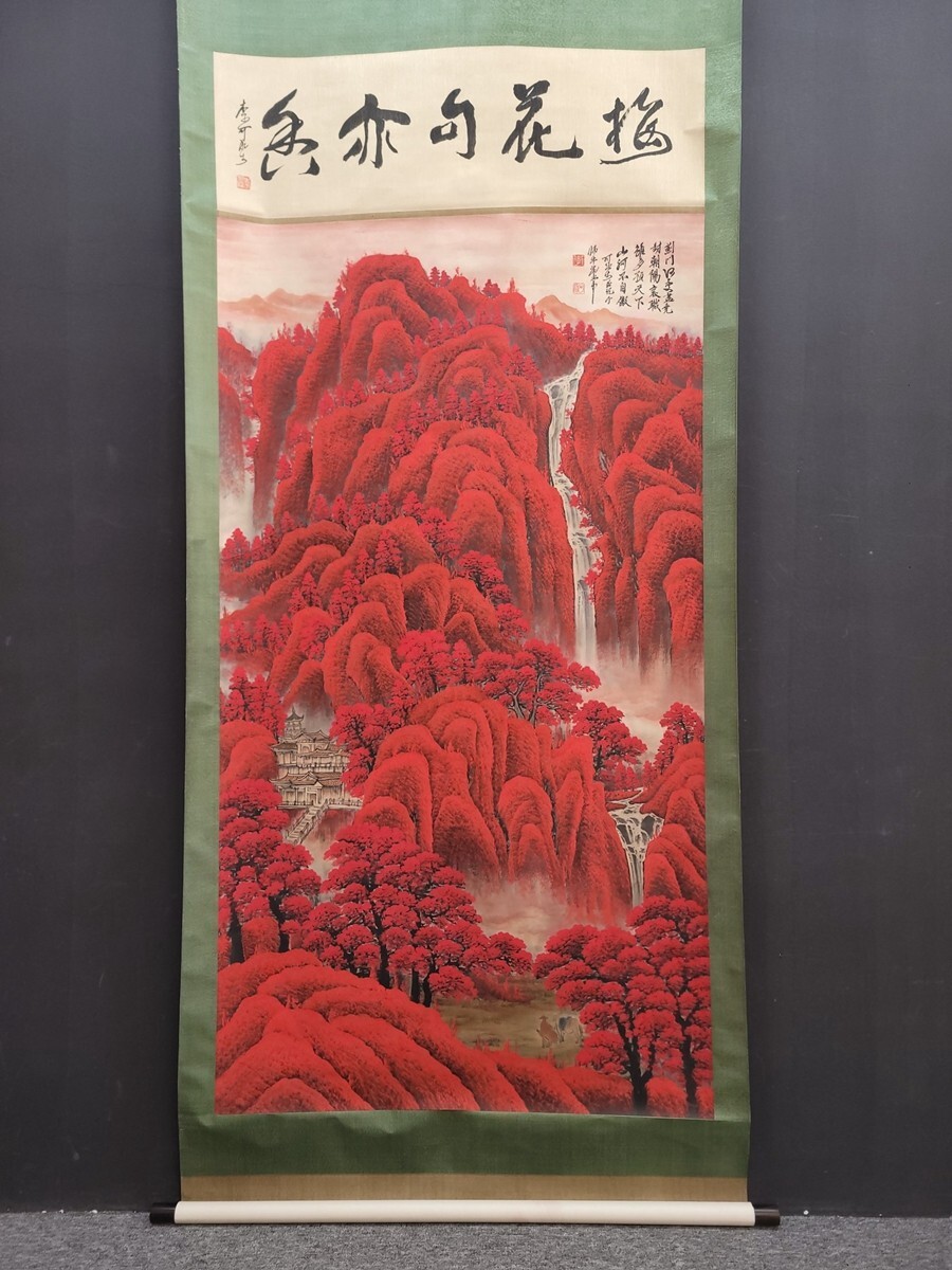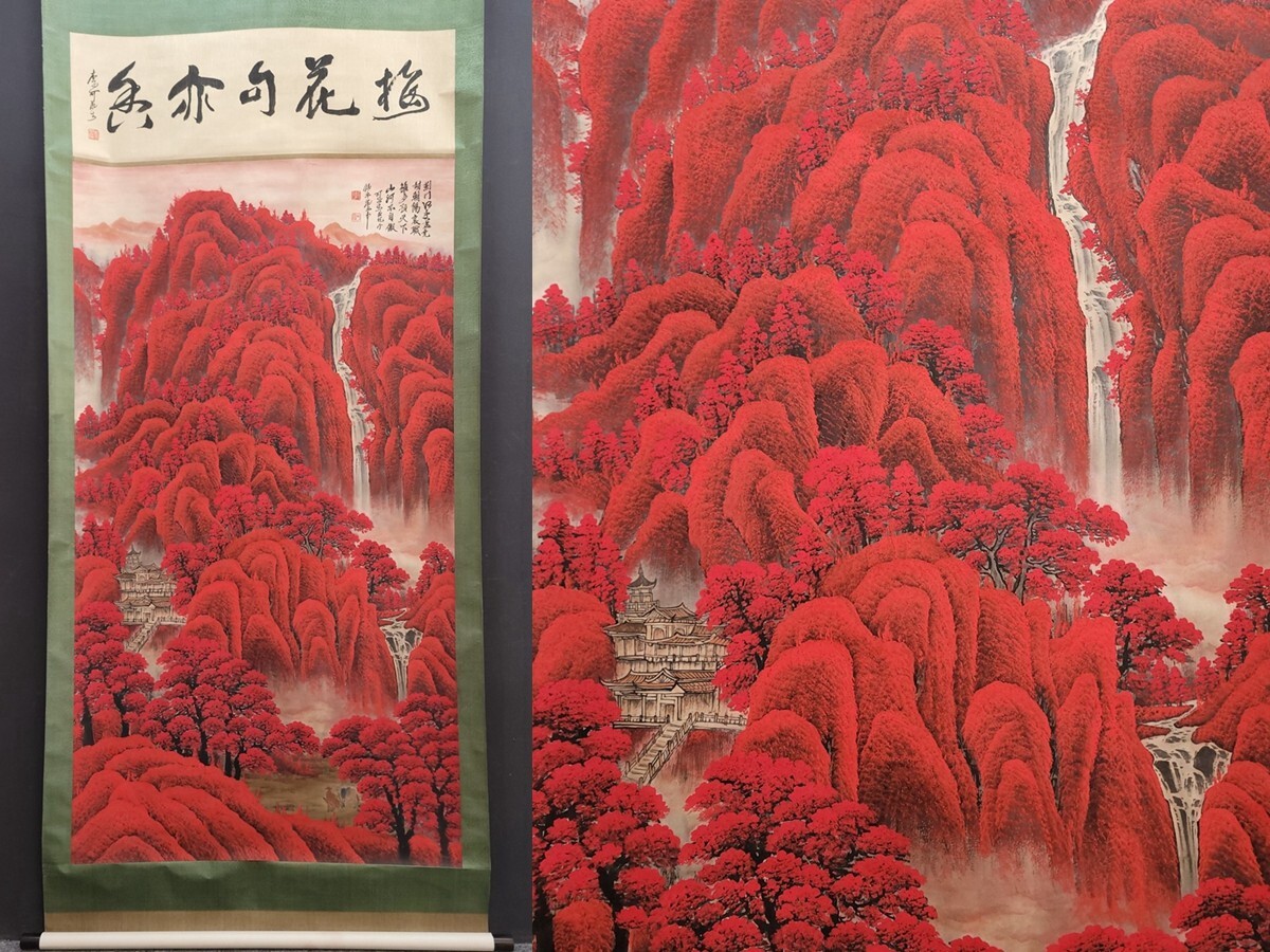 中国書画「李可染 萬山紅山水図」肉筆紙本 掛け軸 墨寶妙品 書画立軸 巻き物 古美術 蔵出