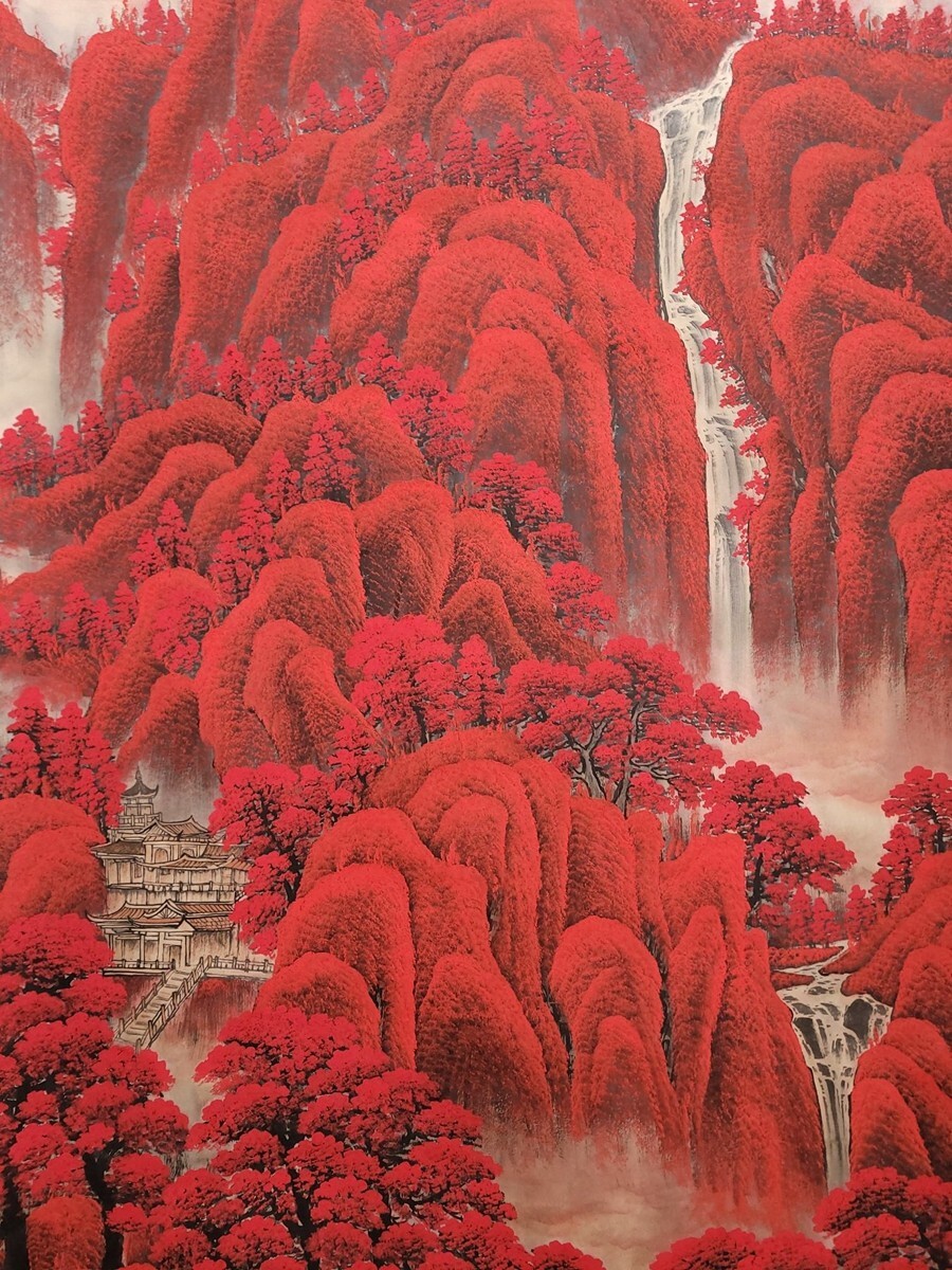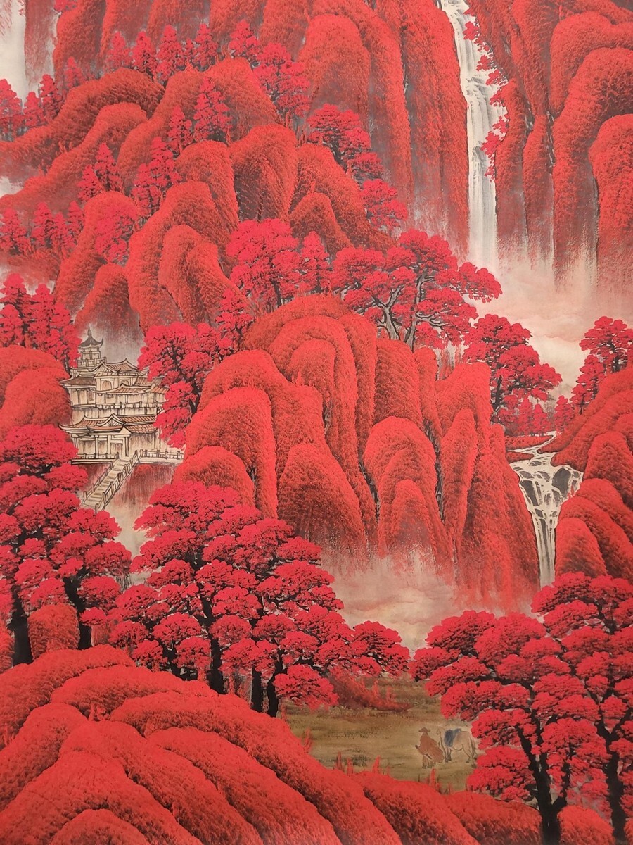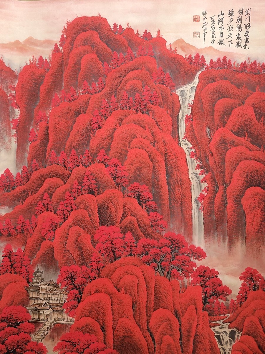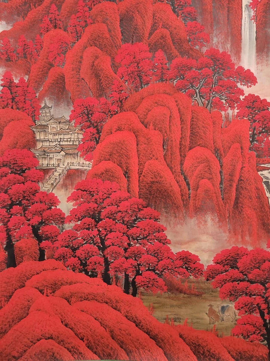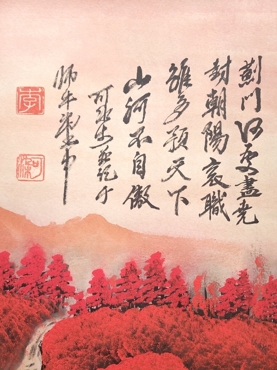 中国書画「李可染 萬山紅山水図」肉筆紙本 掛け軸 墨寶妙品 書画立軸 巻き物 古美術 蔵出
