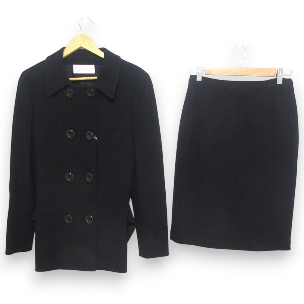 未使用 GENNY ジェニー リブニット ダブルブレストジャケット+ひざ丈スカート セットアップ スーツ サイズ42 ブラック