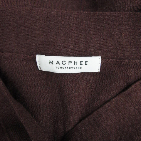 マカフィー MACPHEE トゥモローランド カーディガン ミドル丈 Vネック 麻 リネン S ブラウン 茶 /YM19 レディース