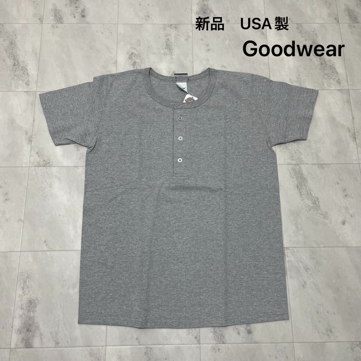 新品 USA製 Goodwear グッドウェア Tシャツ T-shirt TEE 半袖 ヘンリーネック ハーフボタン グレー サイズL 玉SS3246