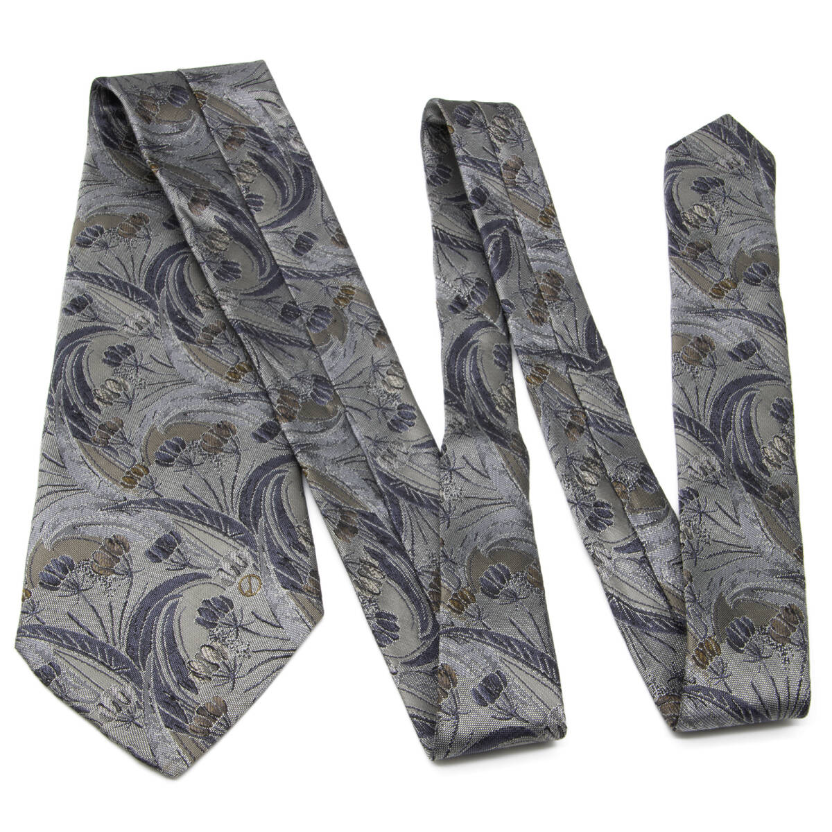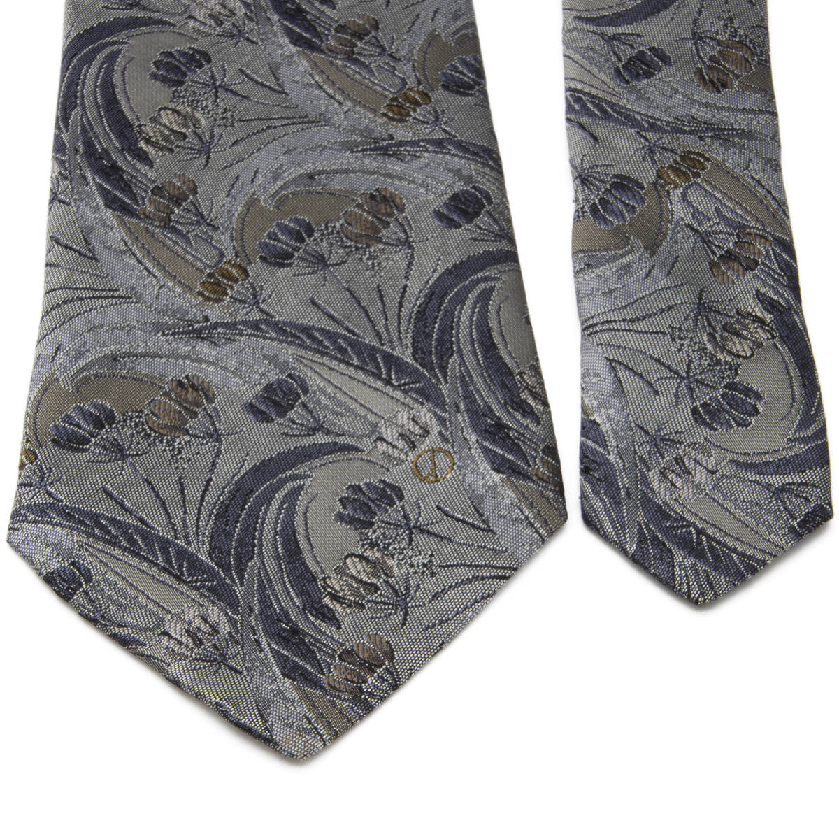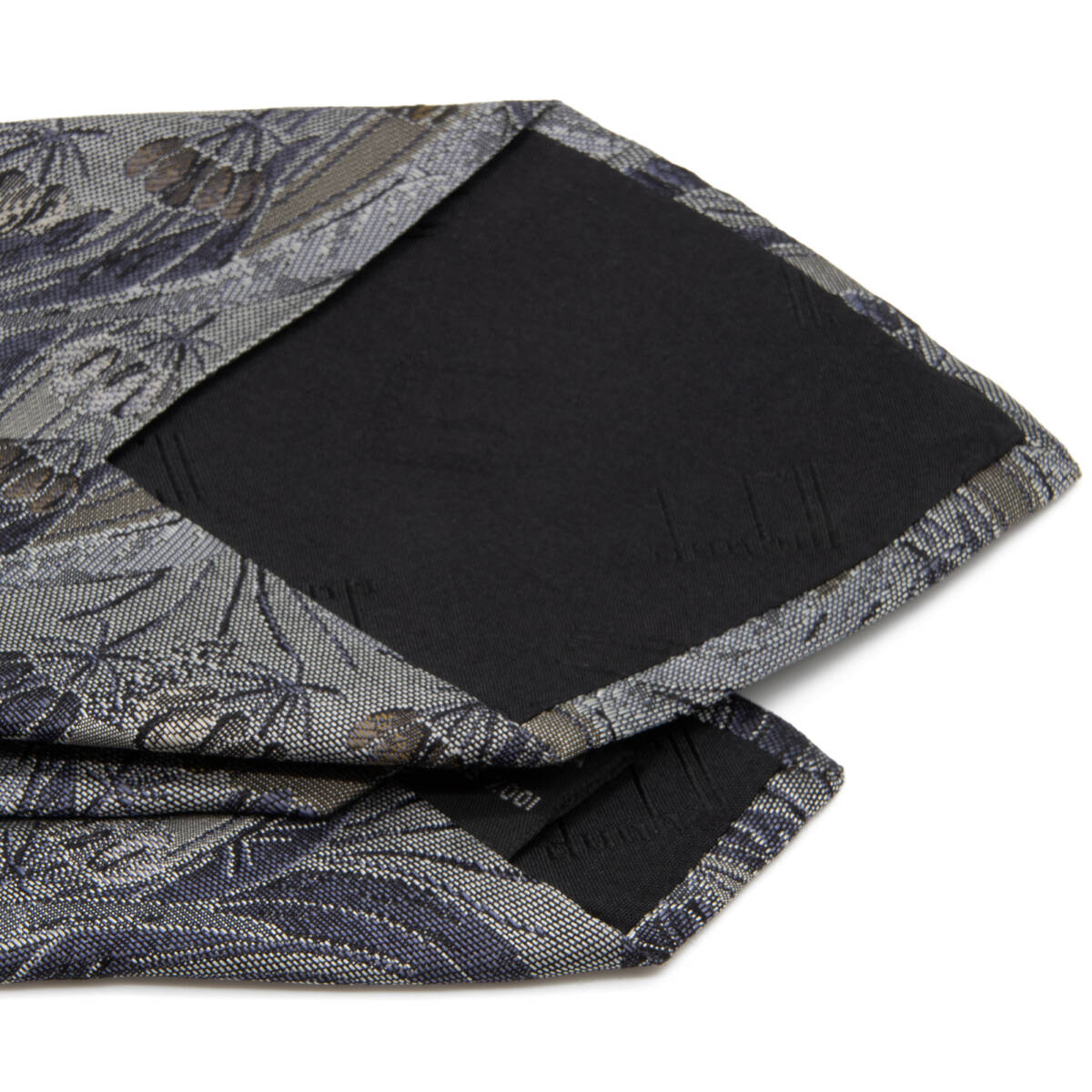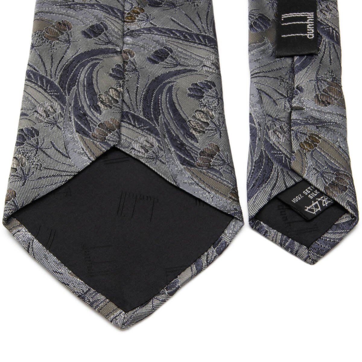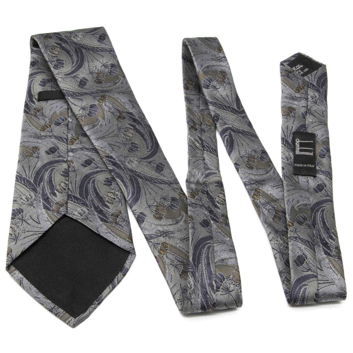 送料無料 ダンヒル ネクタイ レギュラータイ ジャガードタイ シルク グレー 青 茶色 花 草 フラワー ロゴ マーク ブランド イタリア製 N522