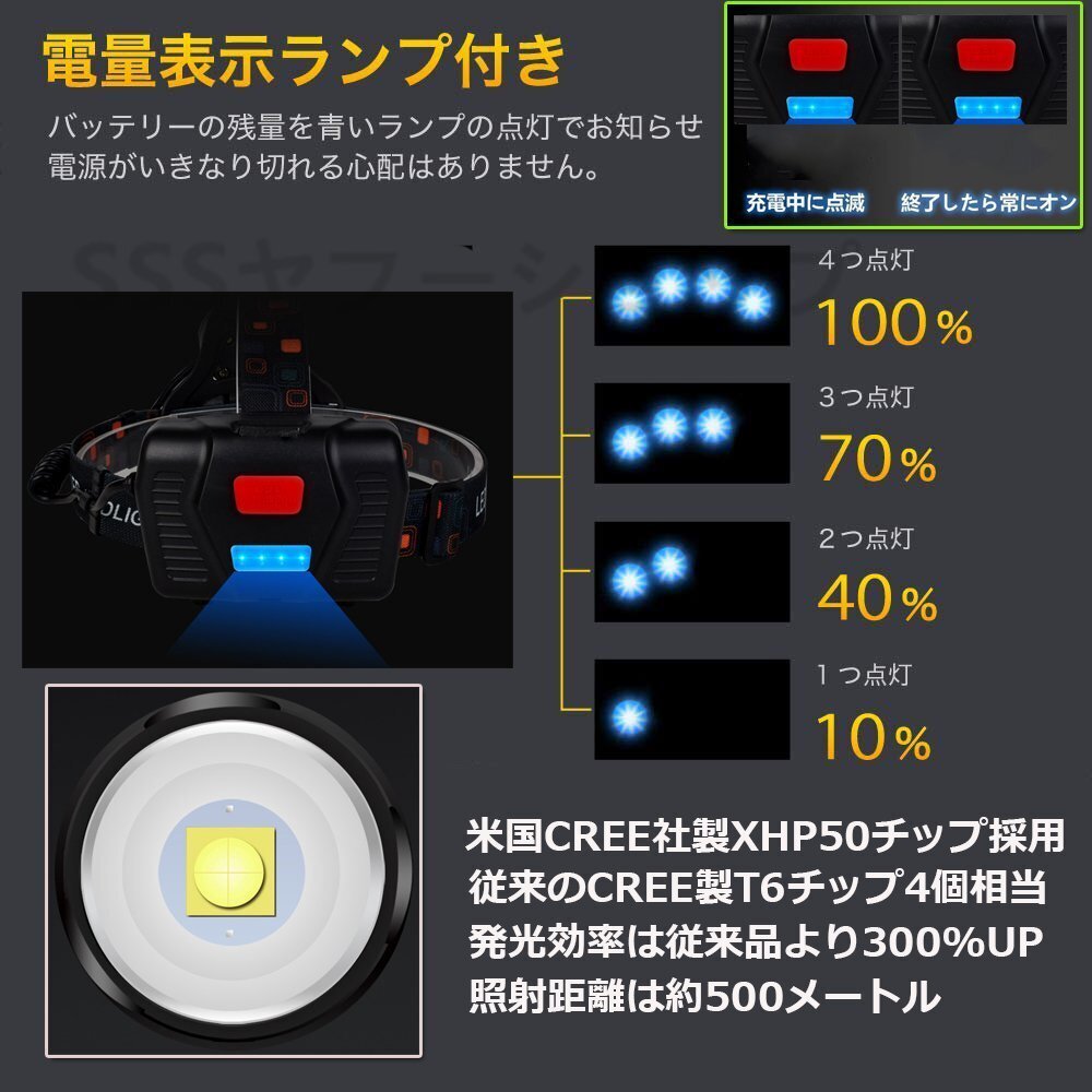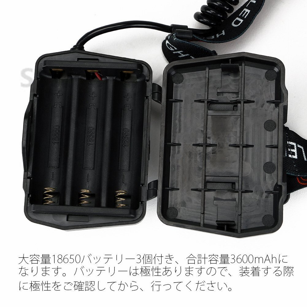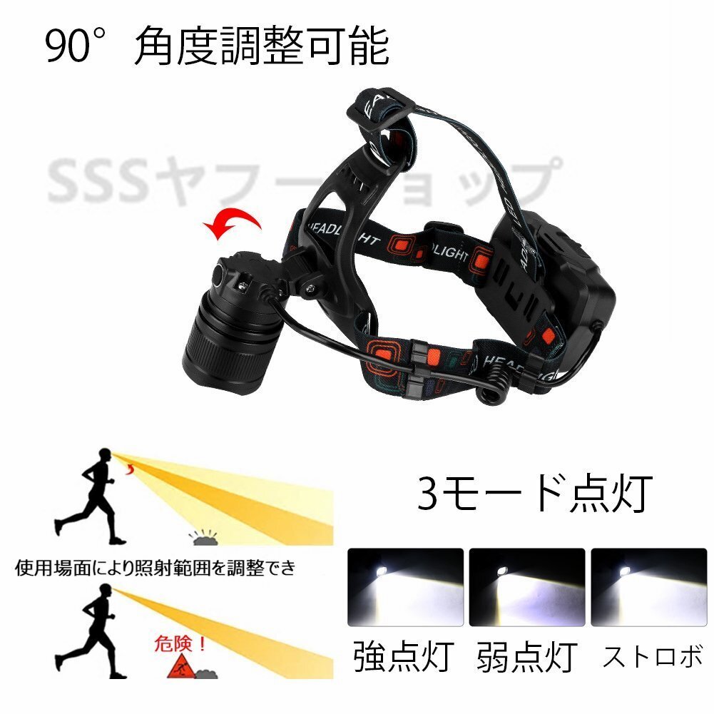ヘッドライト 充電式 LED 充電池付 3モード 角度調節可 防水 ズーム 調光