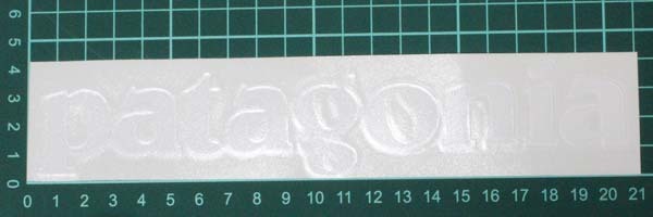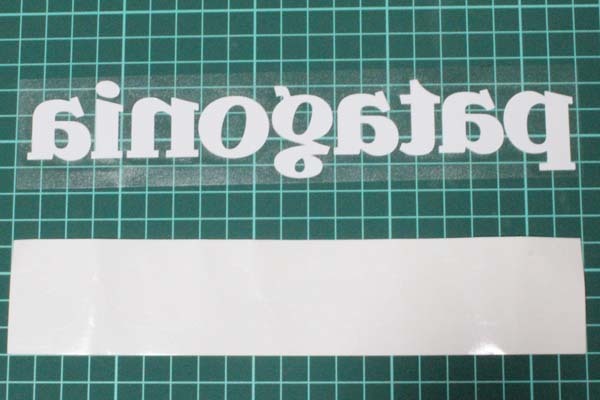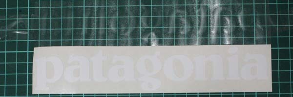 パタゴニアのロゴだけ残るきり文字の転写ステッカーです。