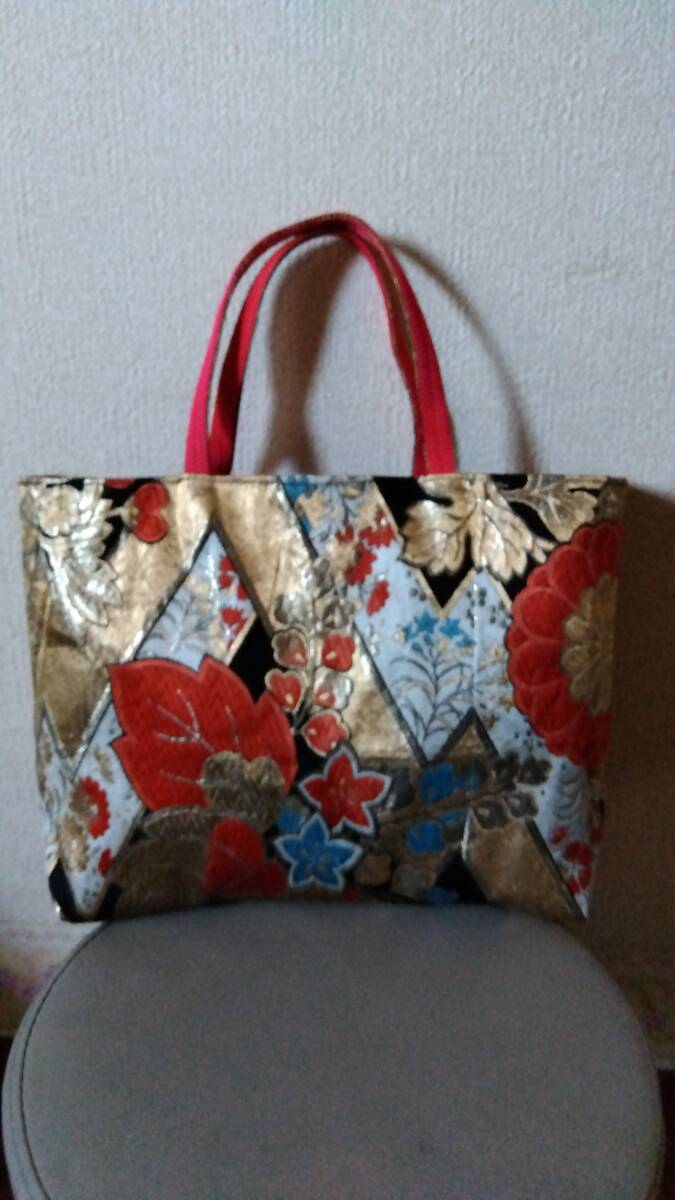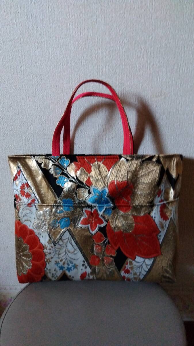 ゆうき【正絹・トートバッグ】帯リメイク・サブバッグ・結婚式・お茶会・外ポケット付き
