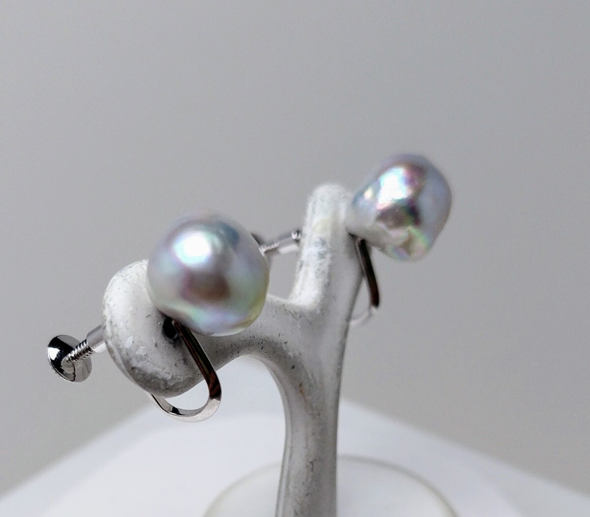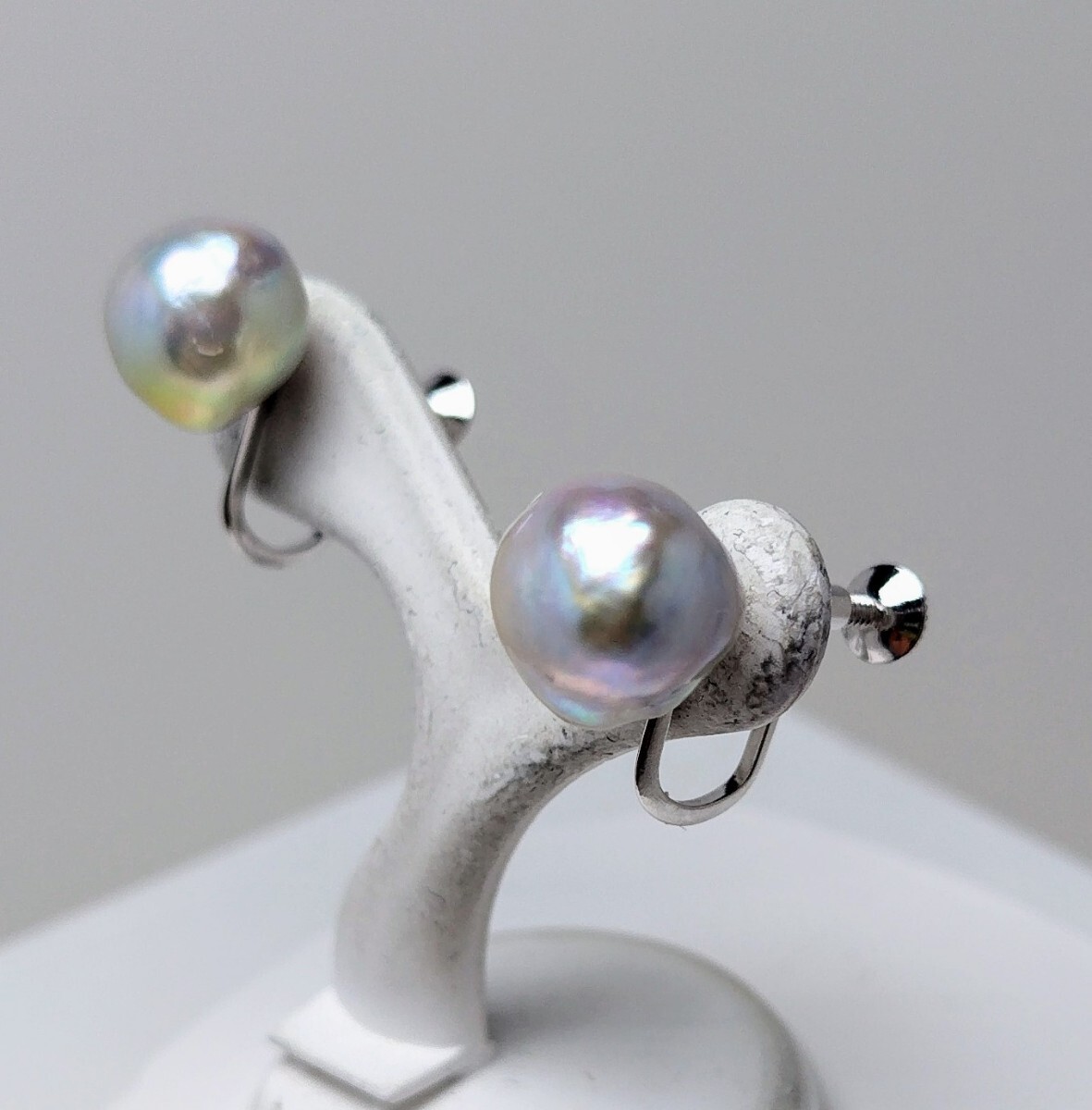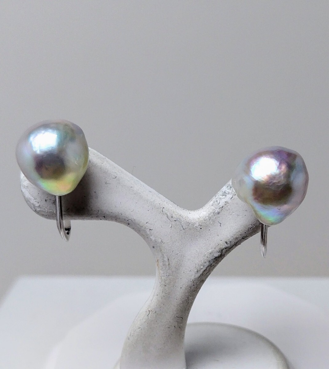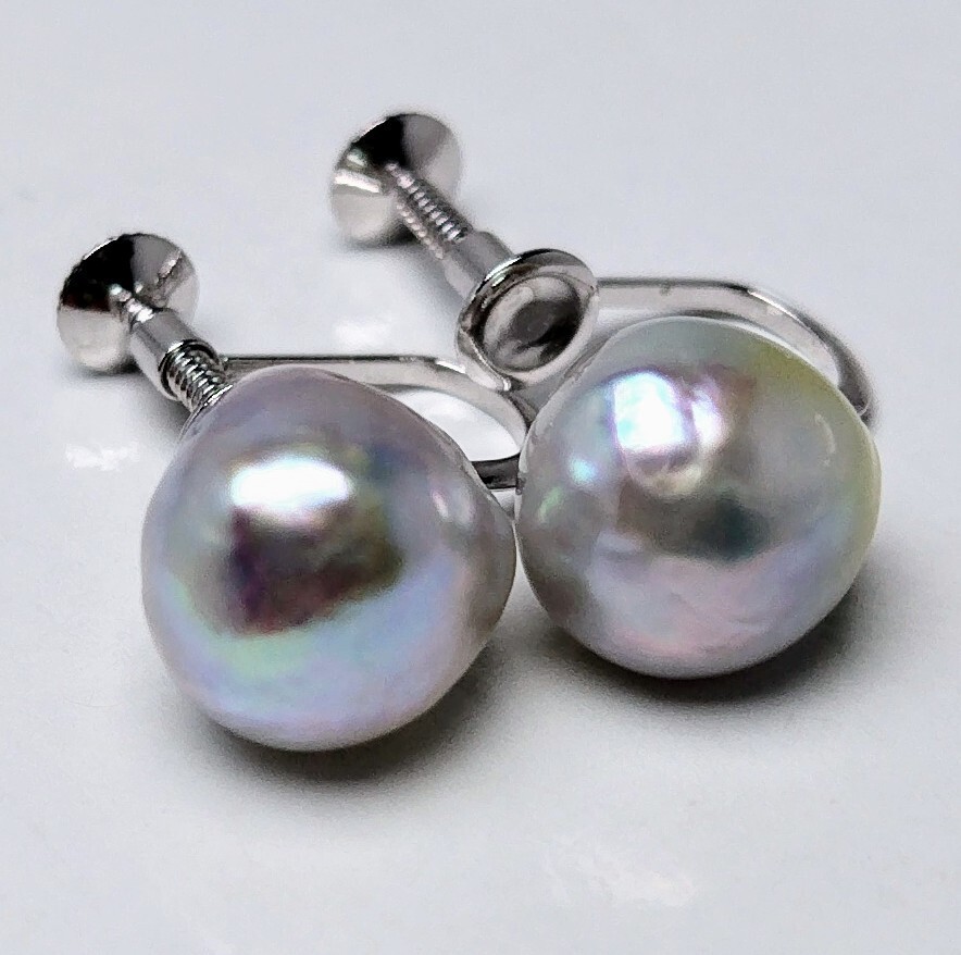 真珠専科 色テリ良 ナチュラル 大珠 あこや真珠 10.1㎜×9.6㎜ 直結 イヤリング
