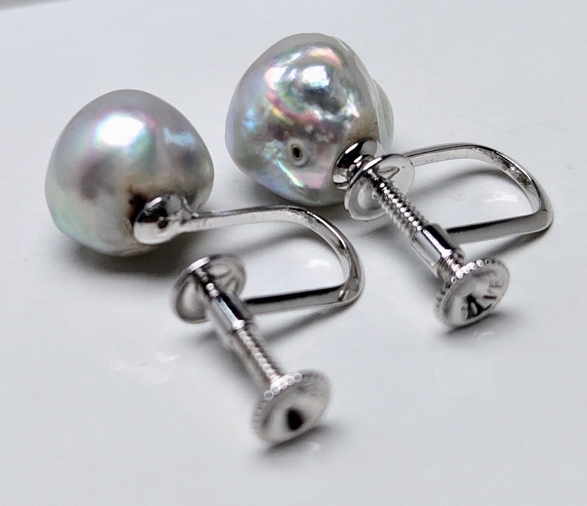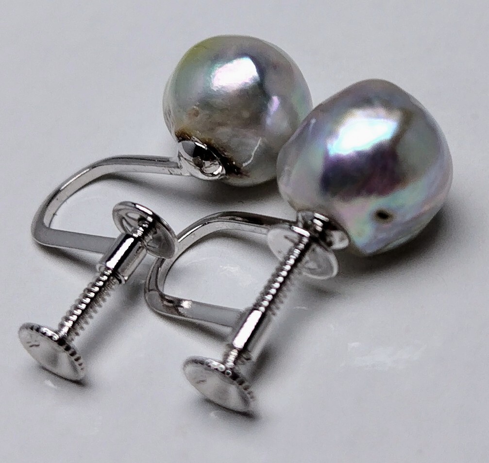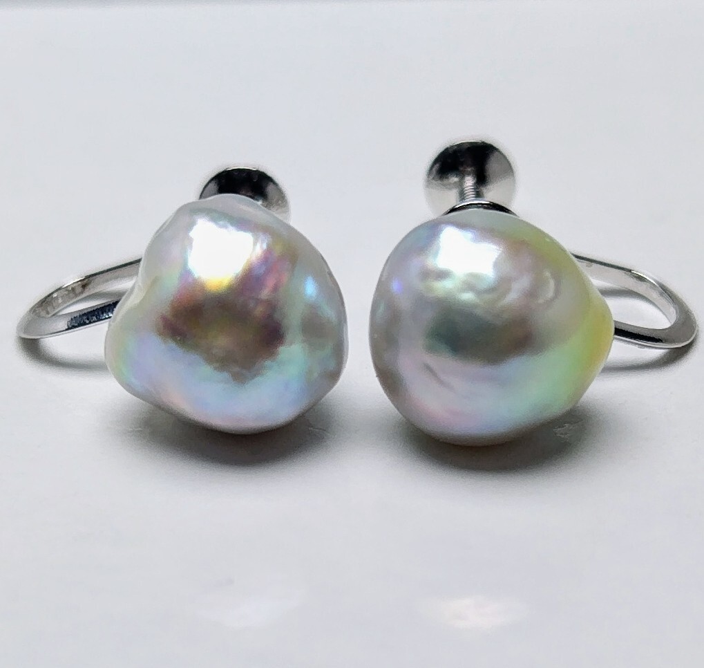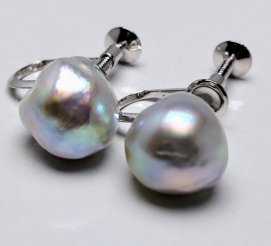 真珠専科 色テリ良 ナチュラル 大珠 あこや真珠 10.1㎜×9.6㎜ 直結 イヤリング