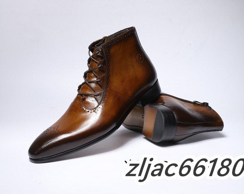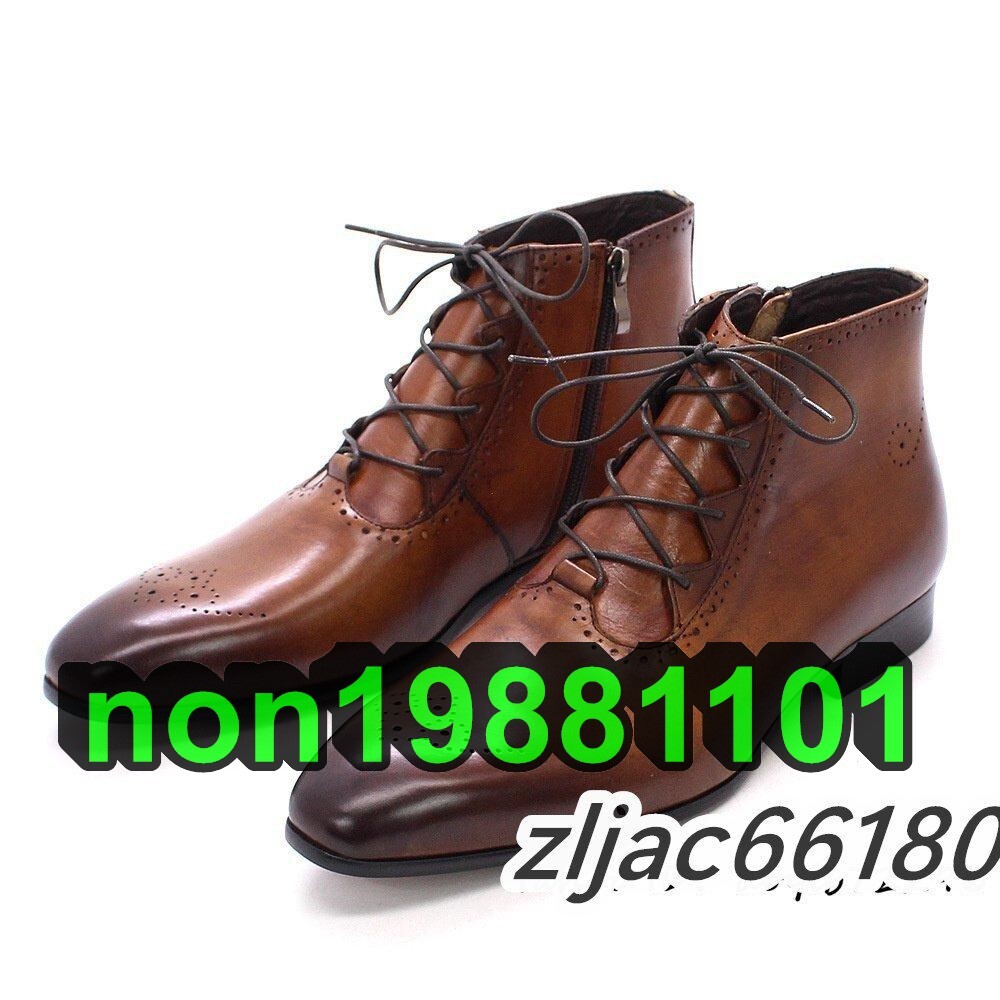 ショートブーツ ビジネスブーツ メンズ 本革 レザーシューズ 職人手作り 彫り ワークブーツ 革靴 紳士靴 牛革 ブラウン 25cmサイズ選択可能