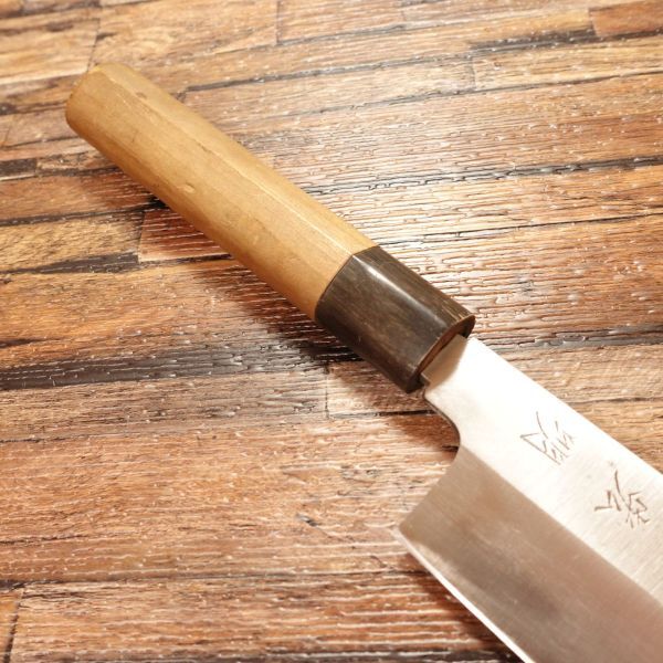 源宏明 薄刃包丁 研ぎ済 関東型 水牛柄 片刃 菜切り