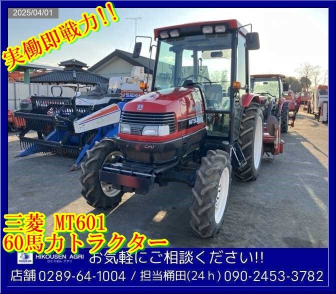 ★★ミツビシ:MT601:トラクター:60馬力:エアコン:4WD:自動水平:外部油圧:ロータリー:MT-1802:実働:即戦力:栃木:配送可:MT601:HIKOUSEN