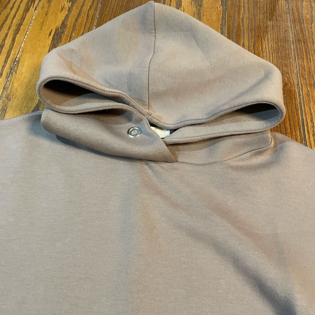 柔らかいブラウンのフーディー、カジュアルに最適。