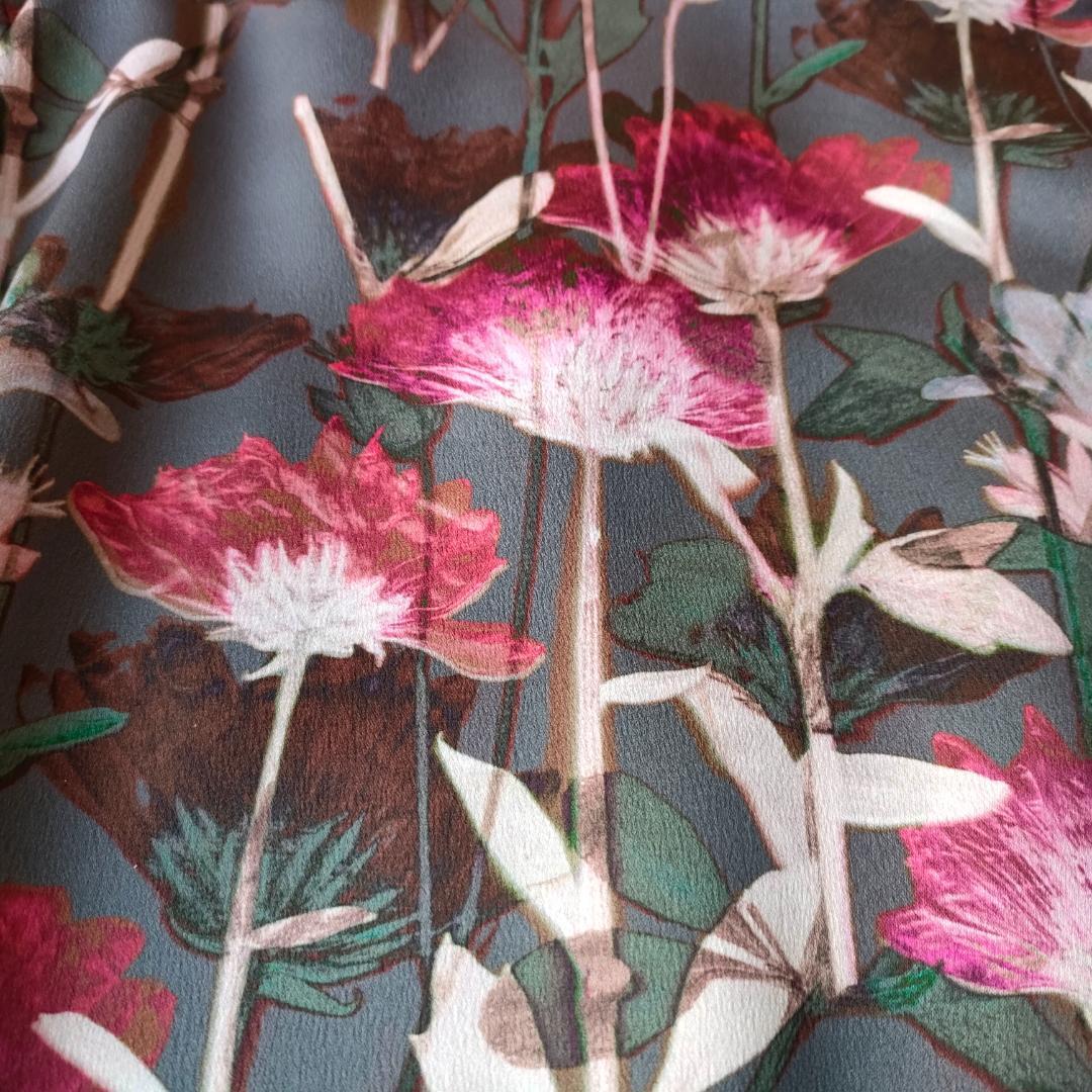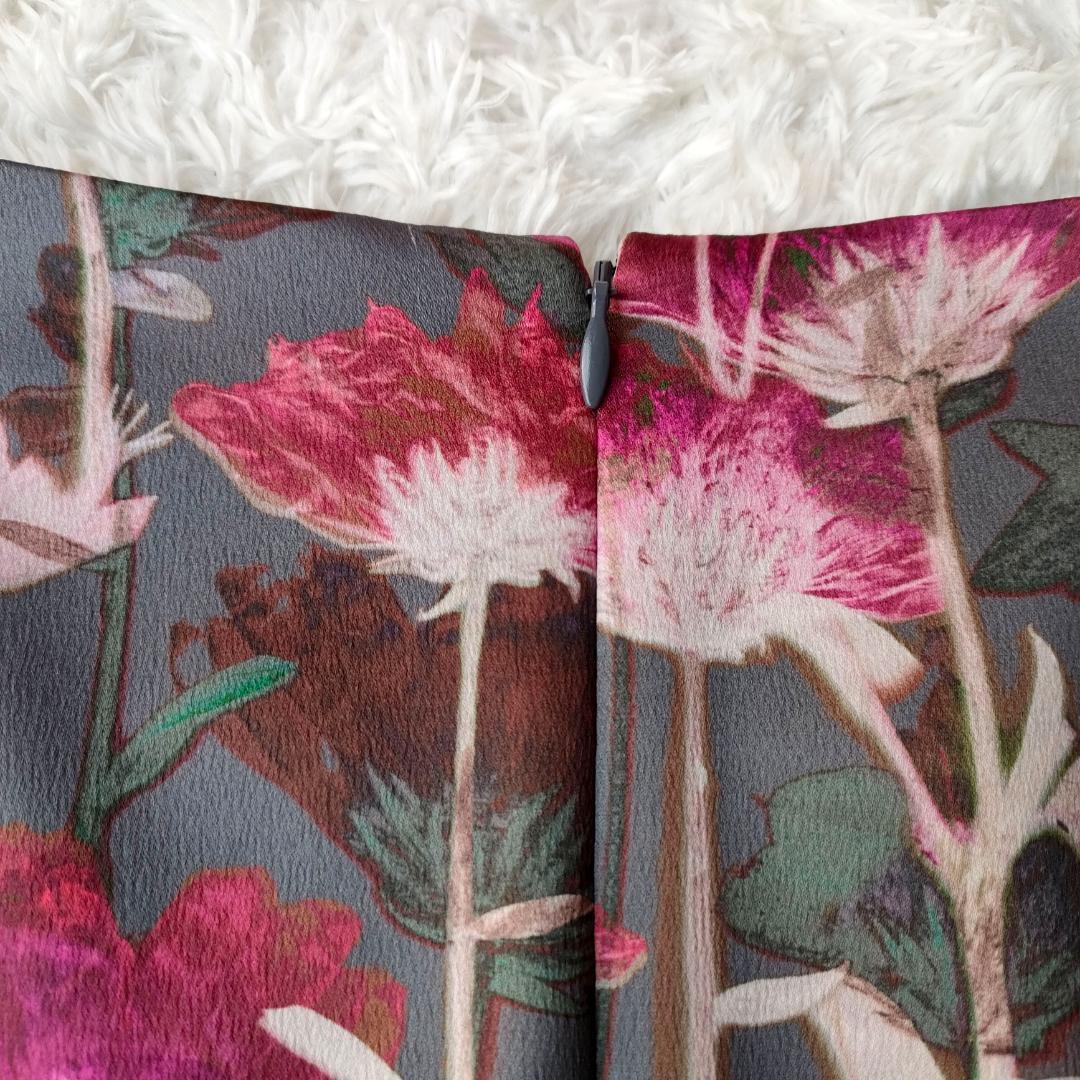 グレー 灰色 マゼンタ系花柄