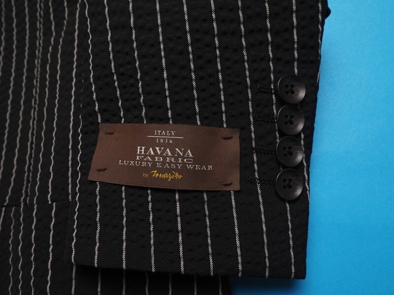 新品8.6万円 大手百貨店扱い 春夏『MARZOTTO マルゾット イタリア製生地』シアサッカー ストライプ セットアップ スーツAB5黒(A) 1636291