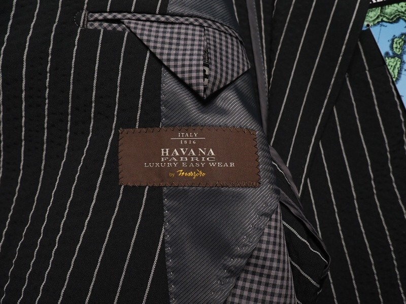 AMFステッチなど、百貨店向けならではの上級仕立てで仕上げられております。ファブリックはイタリア最大規模の老舗メーカー、マルゾット社の生地HAVANA FABRICを使用。ラグジュアリーなテイストとリラックス感の、双方が薫るシアサッカー生地です。上下セットでも単品でも着まわしやすい一着です。