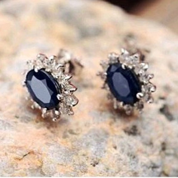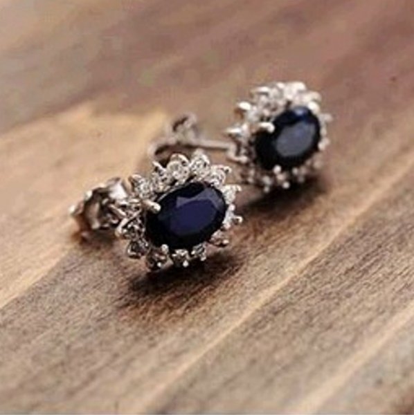 女性用ブラックサファイアのクラシックなスターリングシルバーピアス、925スターリングシルバー、パーティー、記念日