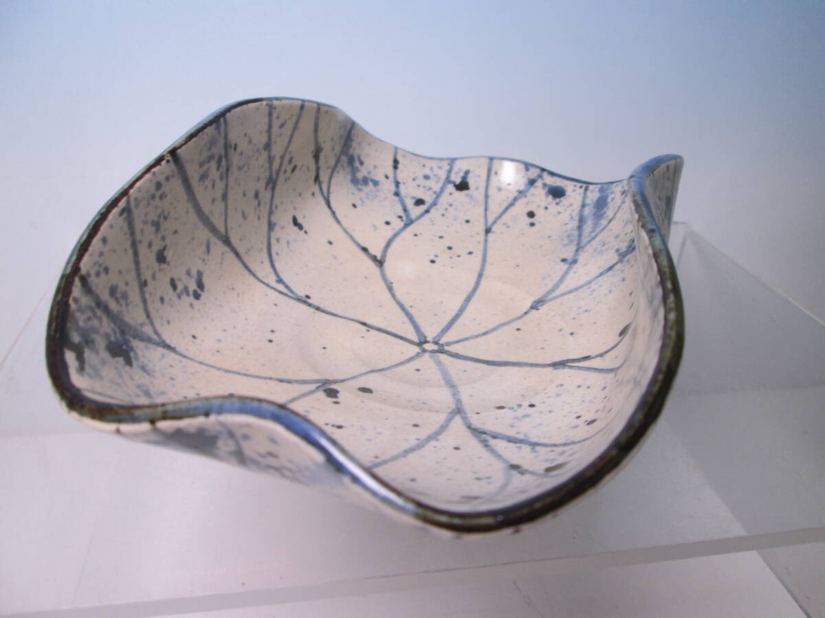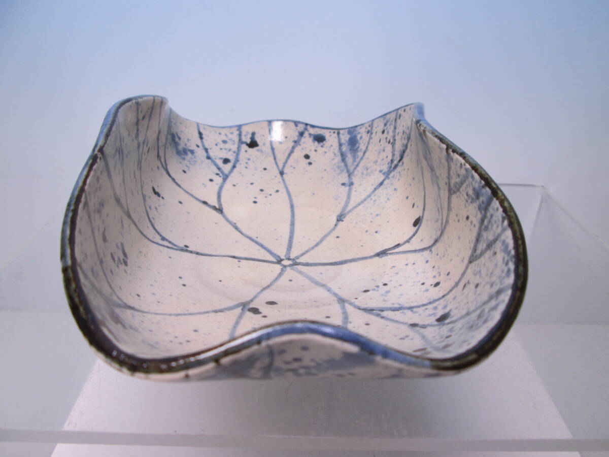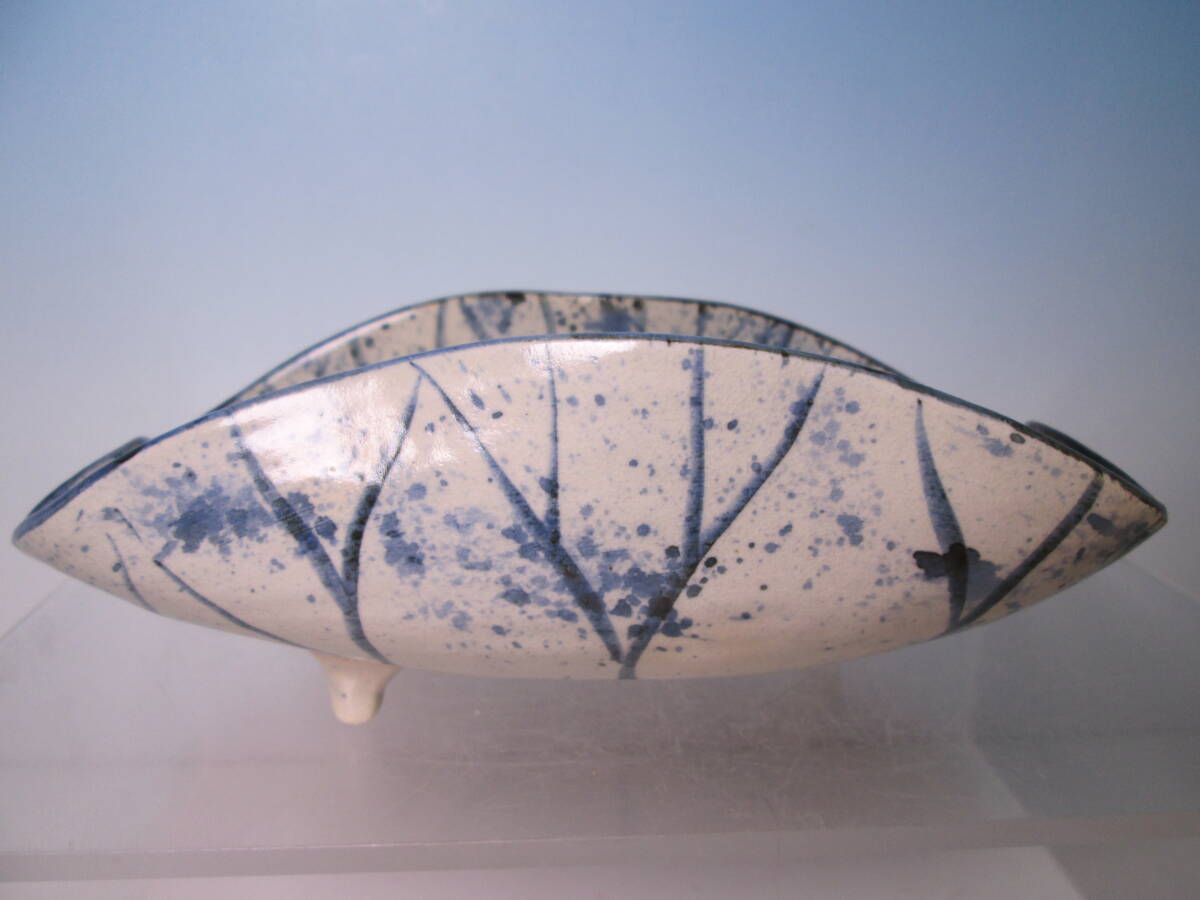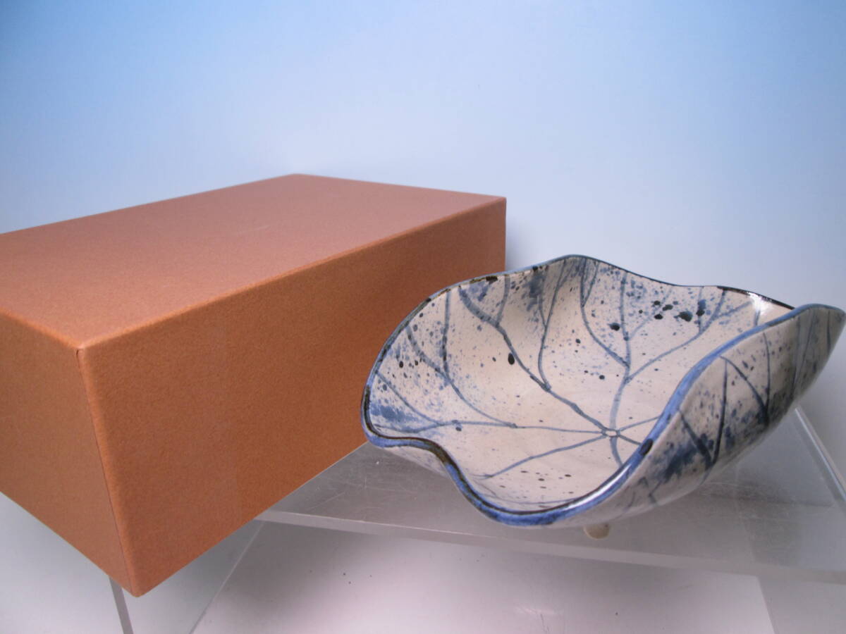☆お料理屋さんの器 春生作 染付 吹墨 三つ足 蓮の葉文鉢 紙箱付き 茶懐石/割烹/日本料理