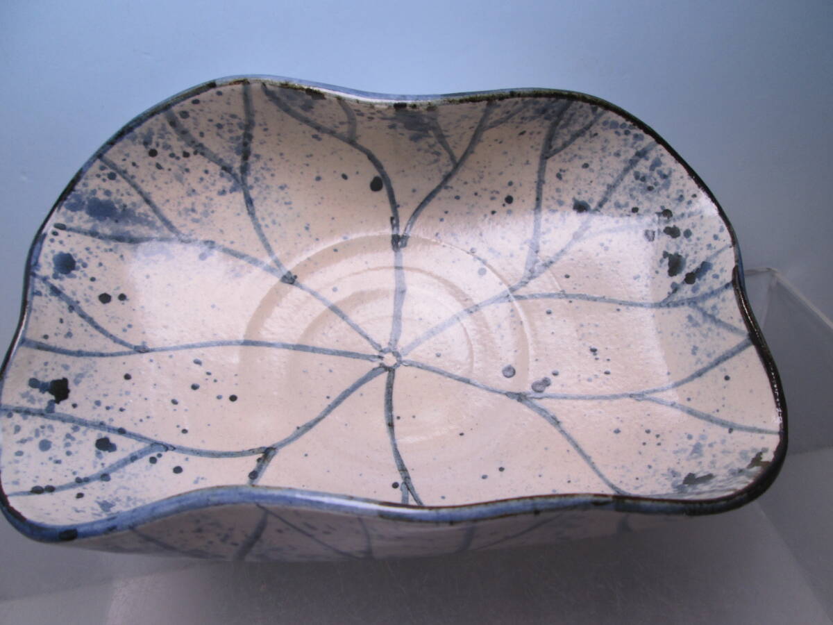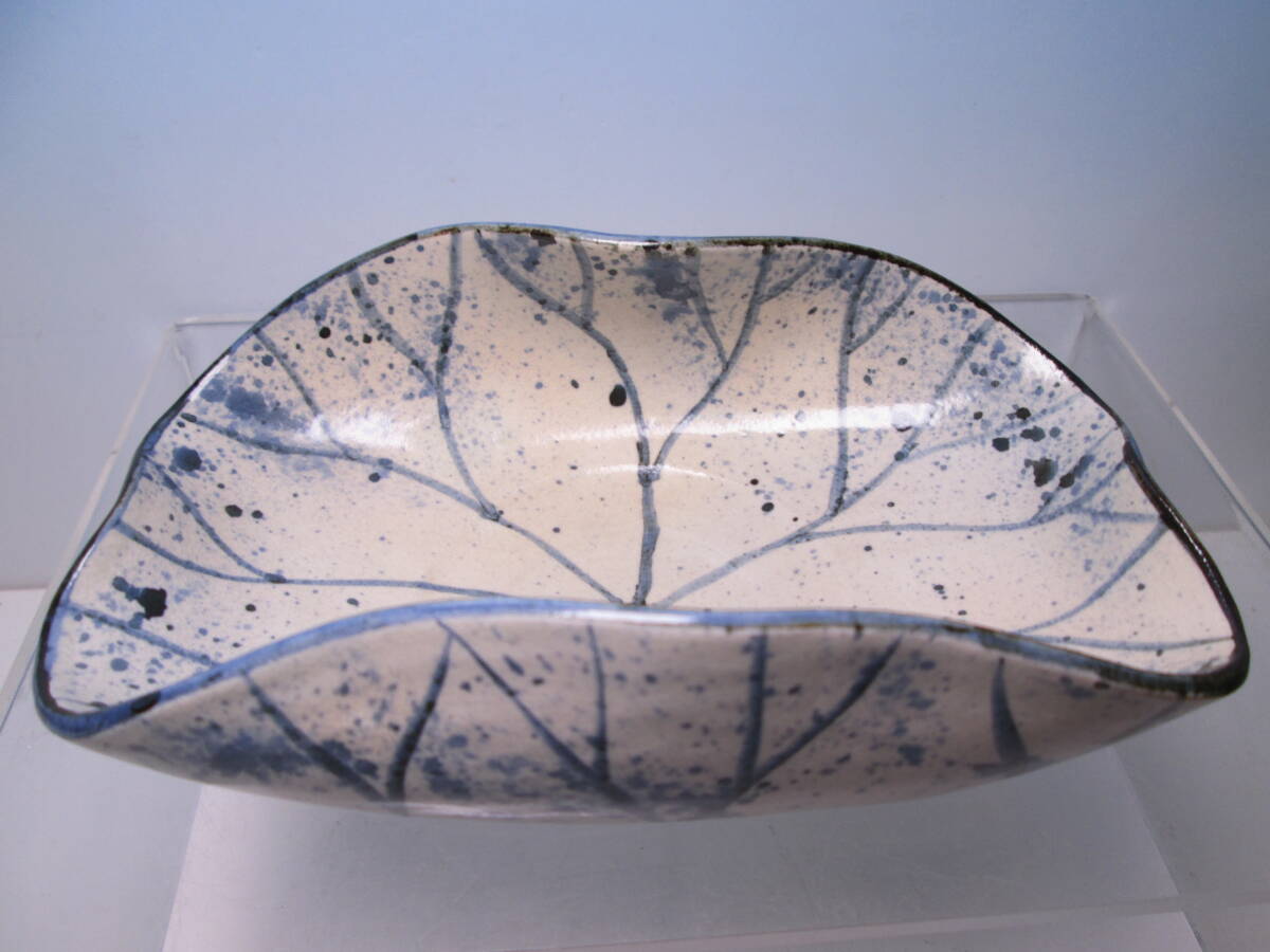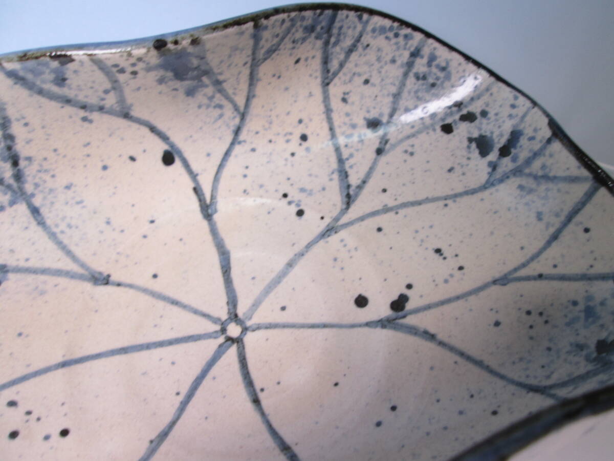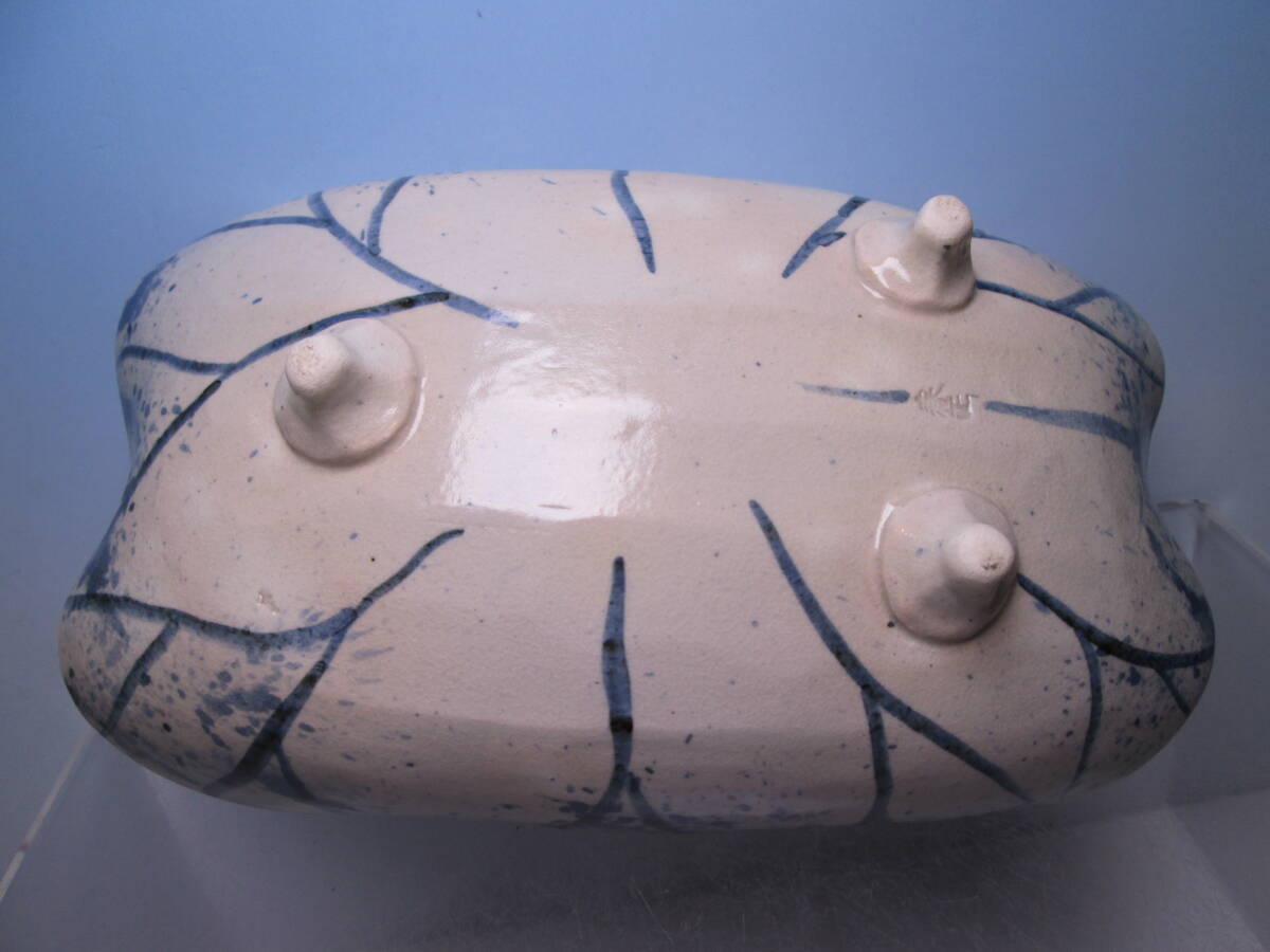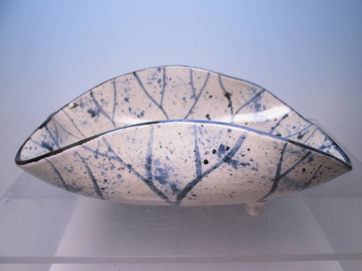 ☆お料理屋さんの器 春生作 染付 吹墨 三つ足 蓮の葉文鉢 紙箱付き 茶懐石/割烹/日本料理