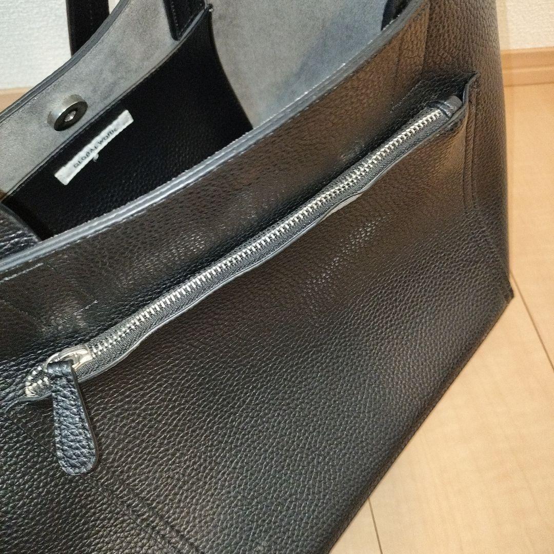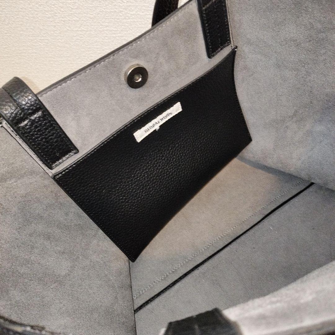 グローバルワーク GLOBAL WORK バッグ ブラック `合皮 鞄 かばん カバン バック` 大容量で重宝するトートバッグです。 日常使い、旅行等様々な用途で活躍いただけます。 画像の通り、一部生地裂けがあることをご了承ください。 サイズ(約): 上部横 50cm 底横 37cm 高さ 32cm 幅 14cm 持ち手長さ 28cm カラー:ブラック 金具:シルバー