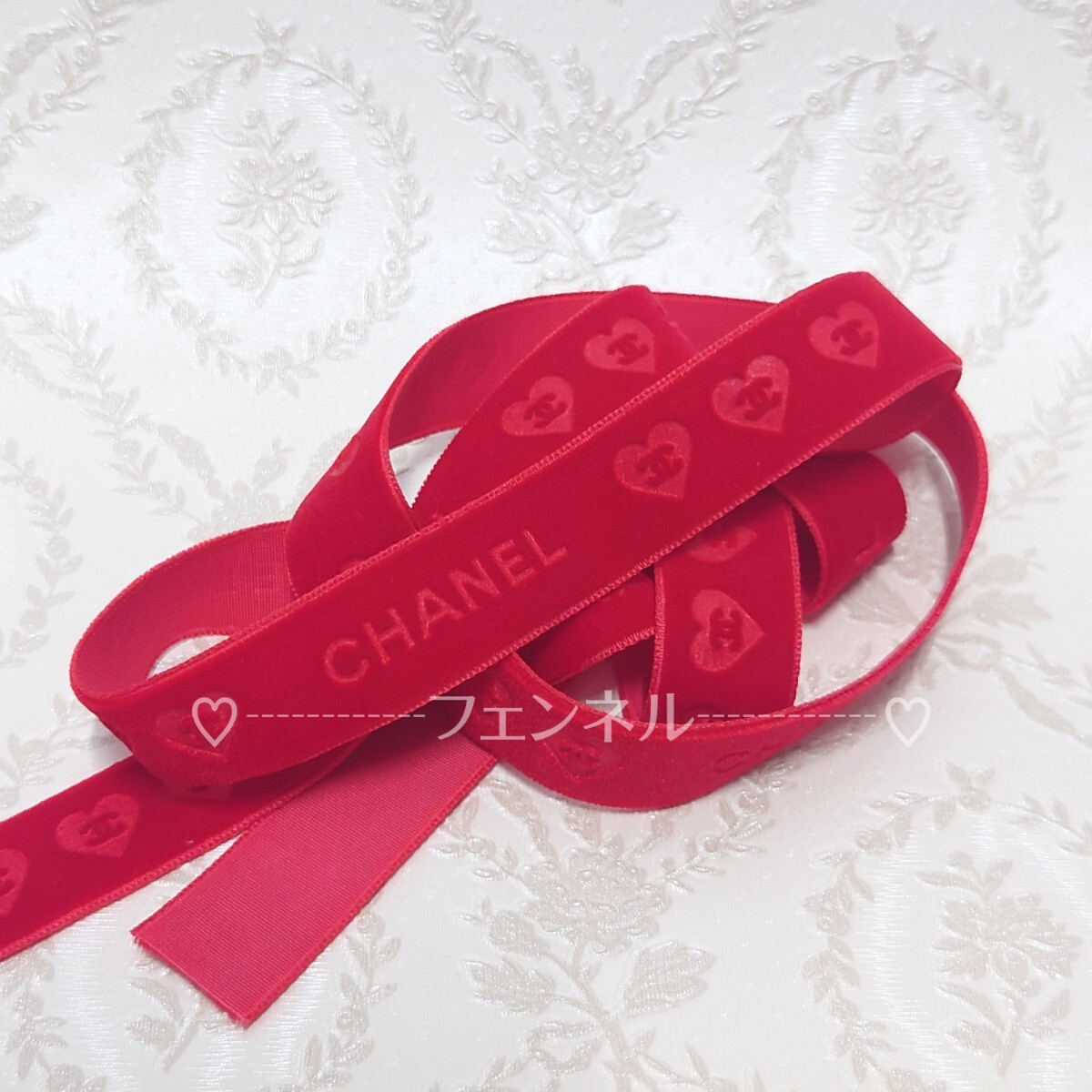 【ベロア赤×6m】入手困難 期間限定 CHANEL ロールからカット シャネル ギフト用 リボン ハート CCマーク ラッピング プレゼント 梱包