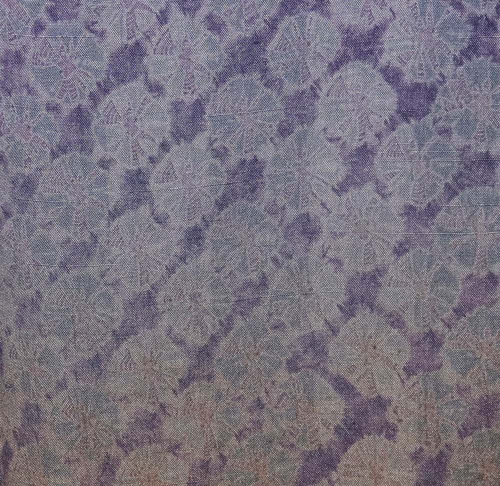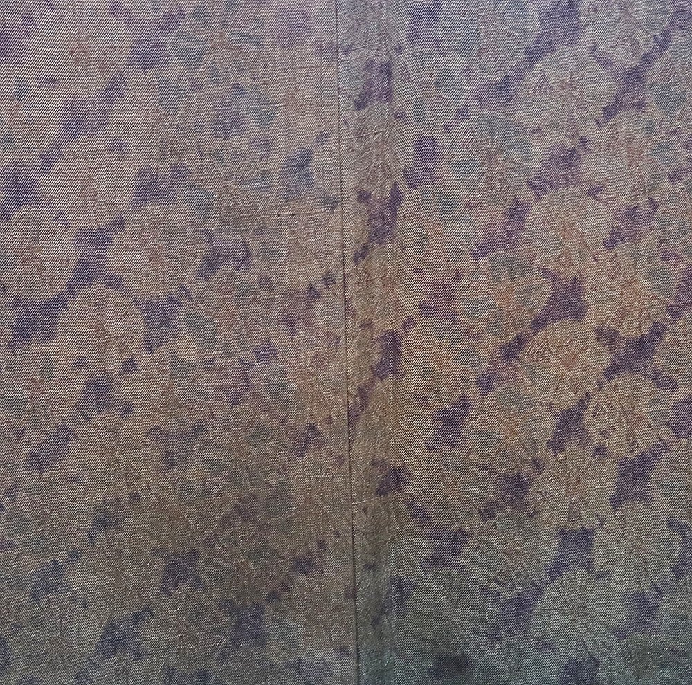 手織り紬 訪問着 袷 丹後縮緬地 紫(紅紫色)・緑(緑青色)・橙色(くちなし色)暈し地 蜘蛛絞り (写真では上手く色が出ない場合があります。ご了承下さい) |