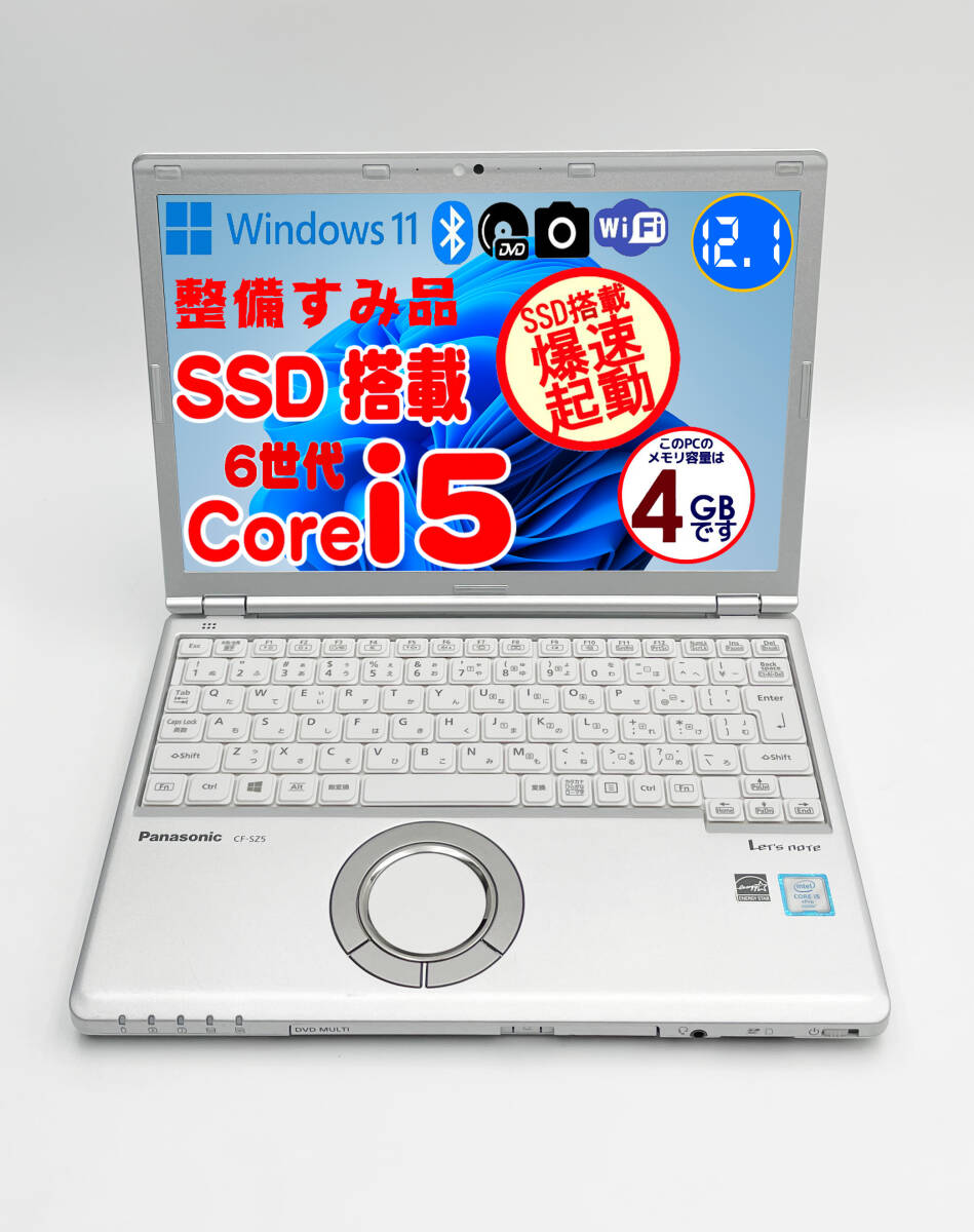 パナソニックCF-SZ5 CF-SZ5ADCKSノートパソコン/6世代Core i5 6300U/高速SSD 128GB/カメラ/ブルートゥース/DVDマルチ/12.1インチ/10B1247