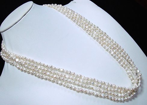 真珠層100%●天然淡水真珠の4連ネックレス●ホワイト●60cm