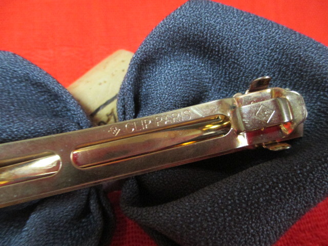 ★CLIP PARIS クリップパリス ヘアクリップ リボン バレッタ。サイズ縦6横11高さ3cm。 ダークグレー ゴールド ヘアアクセ シンプルデザイン 新品美品