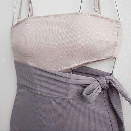 水着 レディース ワンピース カットアウト バイカラー 水着 体型カバー ハイウエスト おしゃれ 大きいサイズ 水着 レディース ワンピース カットアウト バイカラー 水着 体型カバー ハイウエスト セクシー ノンワイヤー リボン ホルターネック セパレート 無地 カーキ オトナ女子 盛れる