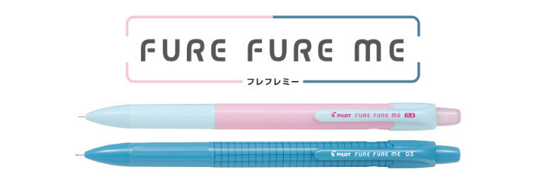 「FURE FURE ME」は、パイロット独自のフレフレ機構を搭載したシャープペンシルです。ペンを振るだけで簡単にシャープ芯を繰り出すことができ、ノックボタンを押すためにペンを持ち替える必要がありません。グリップ部には多面カットを施し細身のボディに仕上げ、女性の手にも握りやすくペンケースにも収まりやすくなりました。また、筆記時の手元が見やすく、携帯時には先端を収納できるガイドパイプスライド機構を搭載しました。