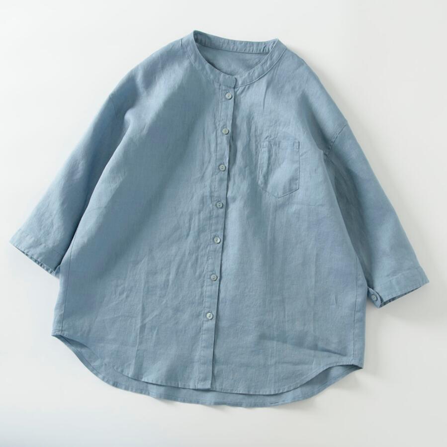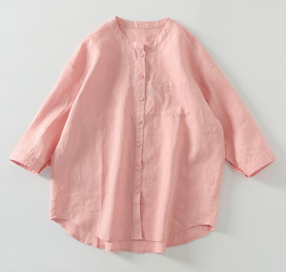 新入荷~綿麻 シャツ レディース ブラウス リネン 7分袖 シャツブラウス 麻混 トップス 大人 ゆったり 大きいサイズ ~麻色