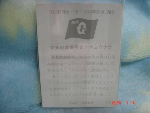 *カルビー 74年プロ野球カード 『熱戦シリーズ』NO.383  (長島/巨人) *