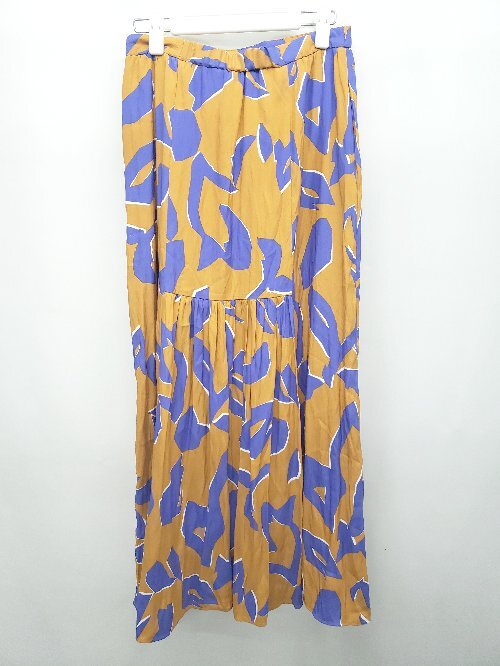 ◇ ROPE' ロペ 総柄 ロング フレア スカート サイズ38 ブラウン ブルー レディース P