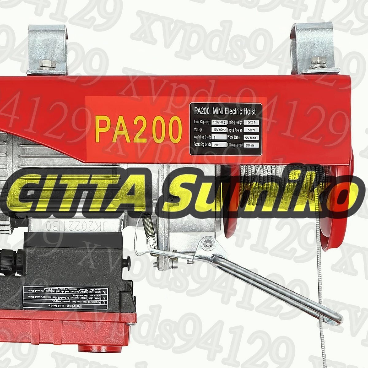 仕様主な材質:スチール、アルミニウム合金シェル材質: 合金フック材質: 合金ケーブル材質: 亜鉛メッキ鋼線表面処理:静電塗装、スプレー塗装モータータイプ: 純銅モーター赤モデル: PA200リモコン型式:YDL-V2Sリモコンの範囲: 100m/328フィート以内プラグタイプ:日本規格電圧: 110V-60Hz入力電力: 510W絶縁グレード:B保護レベル: IP40耐荷重: 440ポンド。吊り上げ能力: 220 ポンド/100 kg (シングルケーブル)、440 ポンド/200 kg (ダブルケーブル)昇降速度: 10m/33 ft/min (シングルケーブル)、5m/17 ft/min (ダブルケーブル)持ち上げ時間:5?10分作業率:20%、10分吊り上げ高さ: 39.4 フィート / 12 m (シングルケーブル)、20 フィート / 6 m (ダブルケーブル)ストラップの長さ: 12 メートル/39.37 フィート梱包サイズ: 48*20*39cm/18.90*7.87*15.35in総重量: 16.5kg/36.67ポンドパッケージは以下を含みます1 * 電動リフト1 * リモコン1 * フック2 * 取り付けクランプブラケット1 * 有線リモコン1 * 英語マニュアルすべての取り付けアクセサリノート1. アームの幅と高さは、取り付けブラケットの内寸を超えないように注意してください。2. 重量物を持ち上げたり移動したりする前に、必ず近くにいるすべての人に安全の必要性を知らせ、警告してください。 必要に応じて、昇降エリアを設置して、誰も、または関係のない人が立ち入らないように注意してください。3. フックに亀裂や変形、ワイヤロープにねじれや腐食がある場合は使用しないでください。