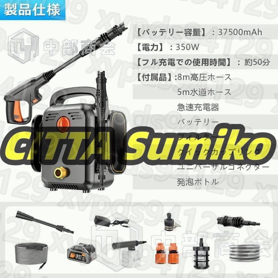 【パッケージ内容】本体*1、37500mAhバッテリー*1、チャージャー*1、発泡水差し*1、クイックカップリング*2、自吸式水フィルター*1、エクステンションポール*1、マルチファンクションノズル*1、ユニバーサルコネクタ*1、給水管5m、アウトレットパイプ8m。