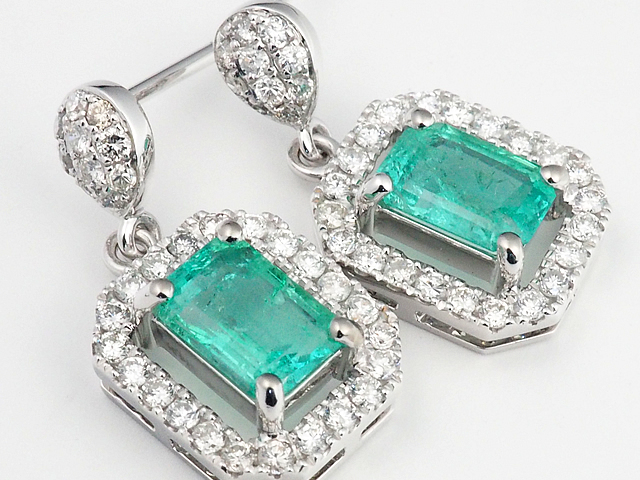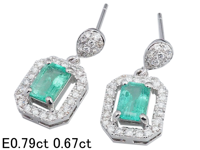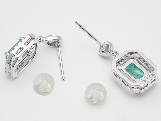詳細:ノーブランド エメラルド/0.79ct 0.67ct ダイヤ/0.56ct K18WG ピアス 鑑別カード付き 仕上済