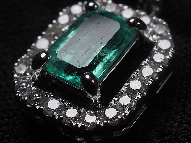 備考:ルーペで見るとエメラルドとダイヤモンドに微細な傷が見られますが、目立つものではございません。輝きのある状態の良いお品物となっております。