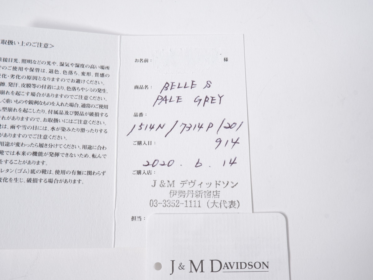 【素材感】柔らかなレザー素材 【付属品(取り外し可)】購入時のカード類(お名前は削除済み) 【裏地】なし 【内ポケット】ジップポケット 【商品情報】『品番1514N/7314P/101914/商品名BELLE S PALE GREY』J&M DAVIDSON伊勢丹新宿店 購入品 |