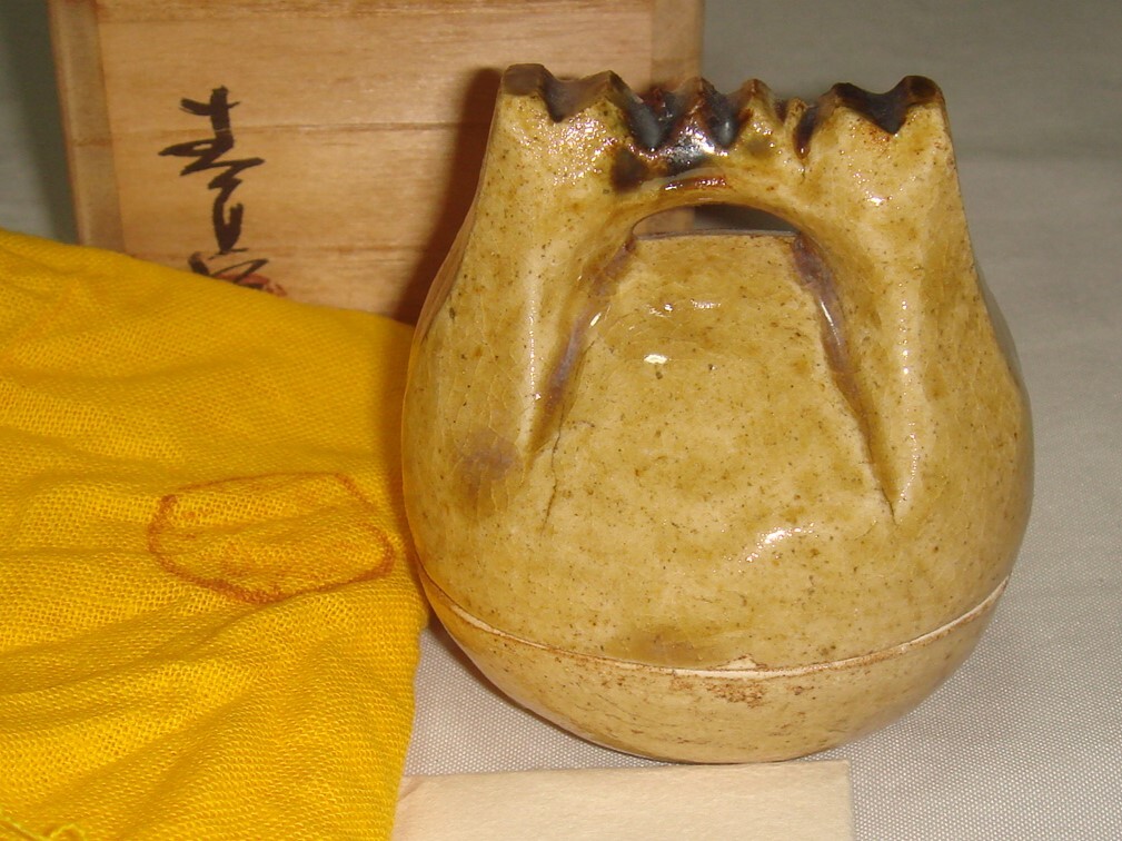 茶道具 黄瀬戸香合 瀬戸焼 2代目加藤春鼎(春倫)作 黄瀬戸木魚香合 美品!!