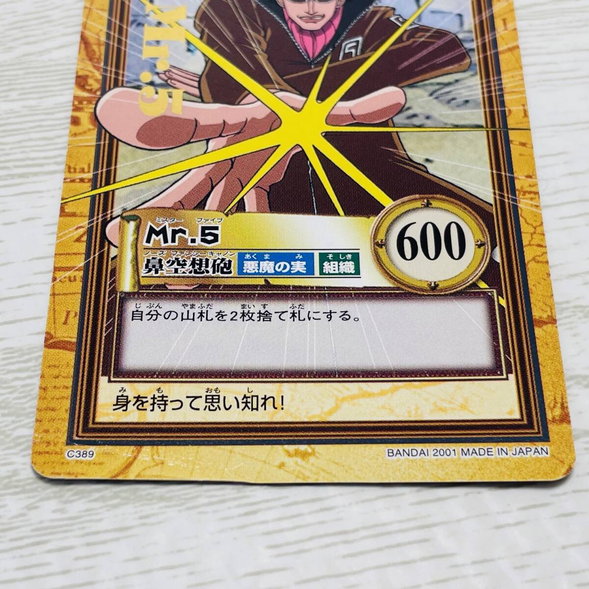 ●初期 旧 ワンピース カード ゲーム ●バンダイ ●2001年 ●Mr.5 鼻空想砲 悪魔の実 組織 ●C389 ●スレ・若干の歪み・折れはあります。 ●個人保管品になります。 ●上記ご理解いただける方のみお願いいたします。 |