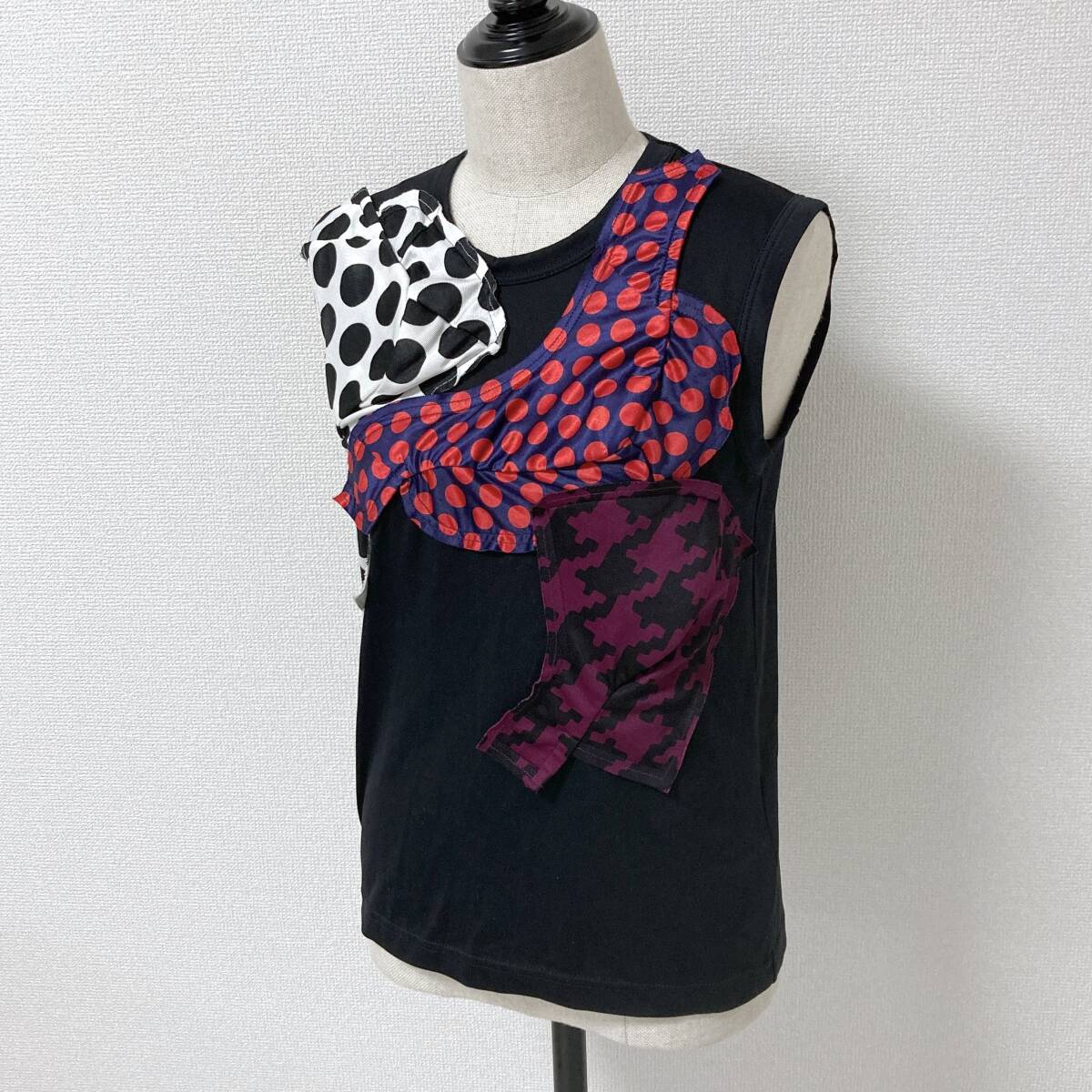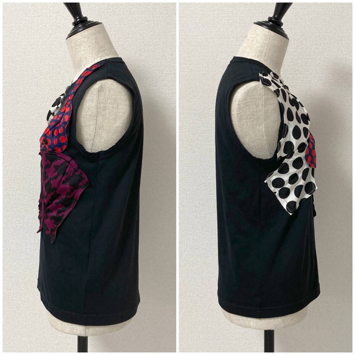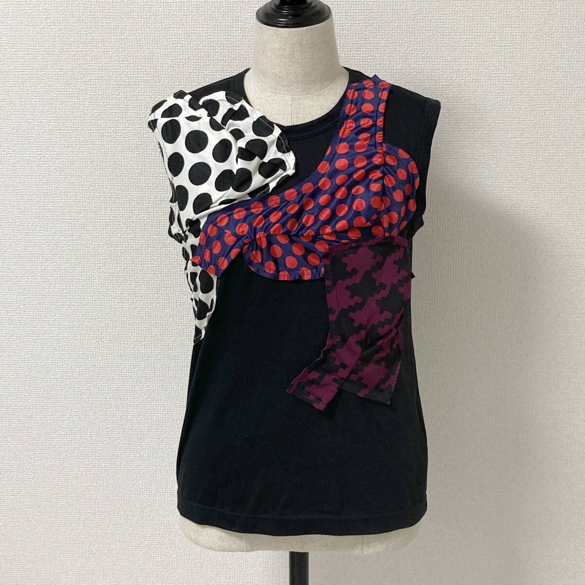 AD2009 COMME des GARCONS ドット 千鳥格子 パッチワーク ノースリーブ カットソー コムデギャルソン 水玉 タンクトップ archive 1448