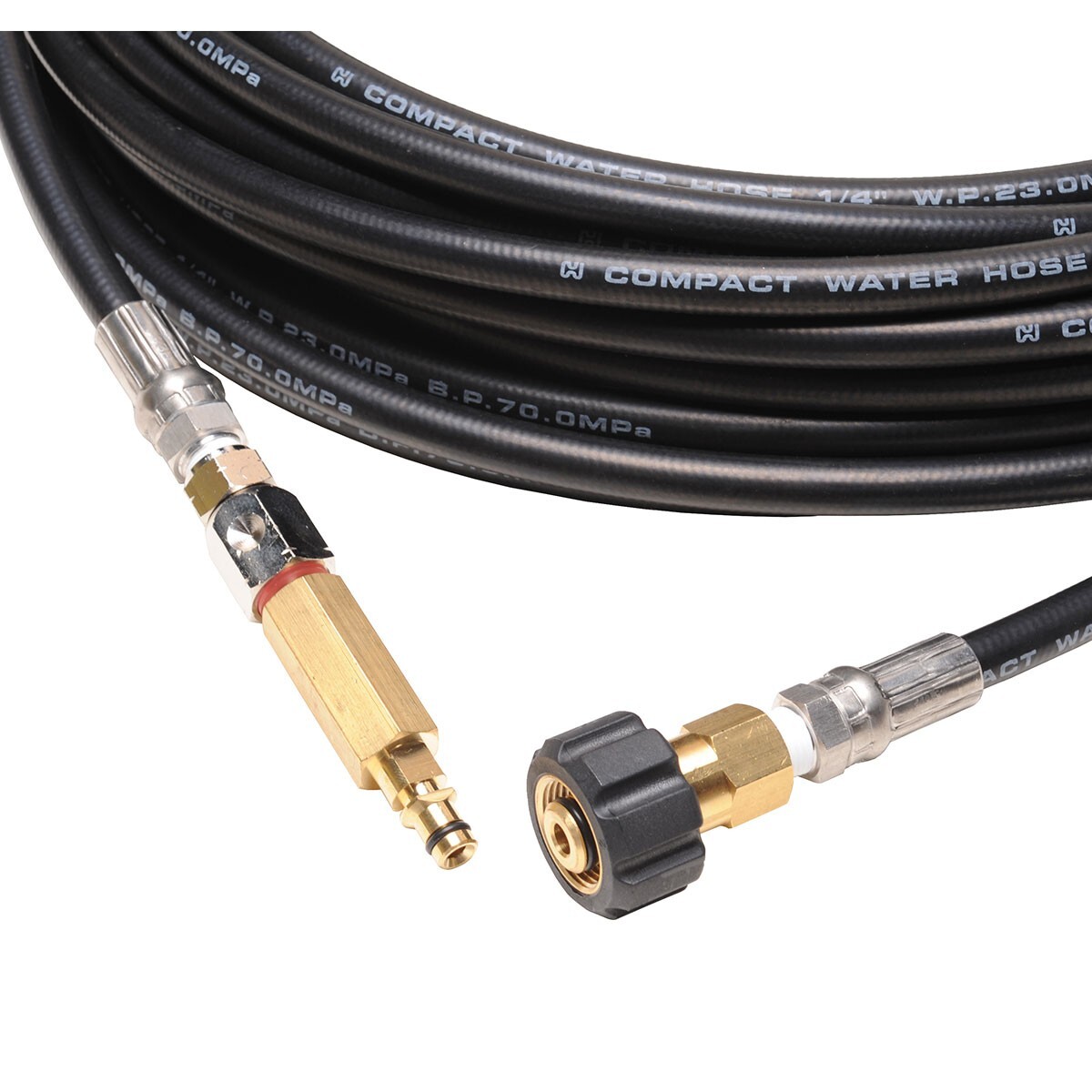 プロ向けのワイヤー補強されたゴム製ホースのため巻きグセがほぼなく、柔軟性に優れています!